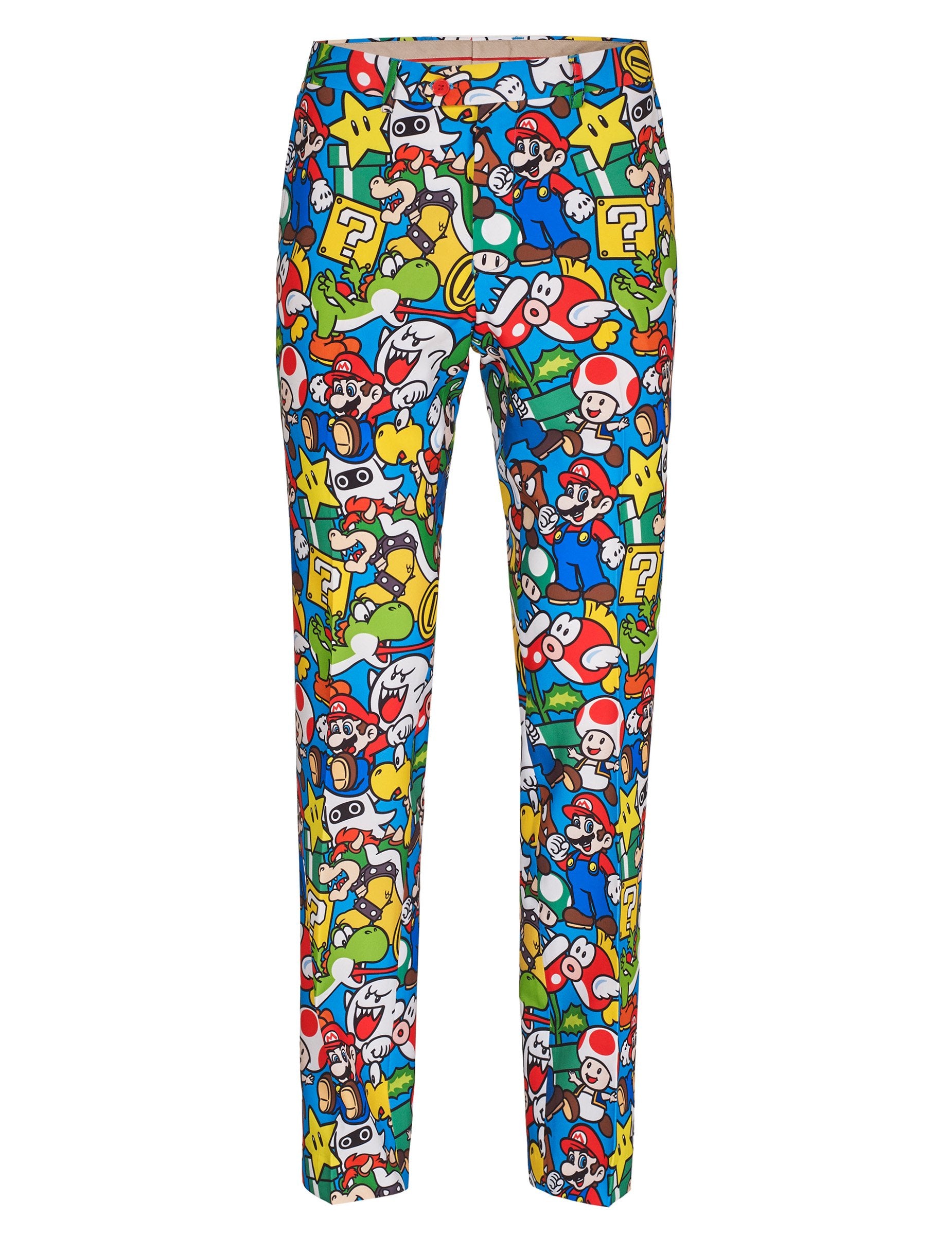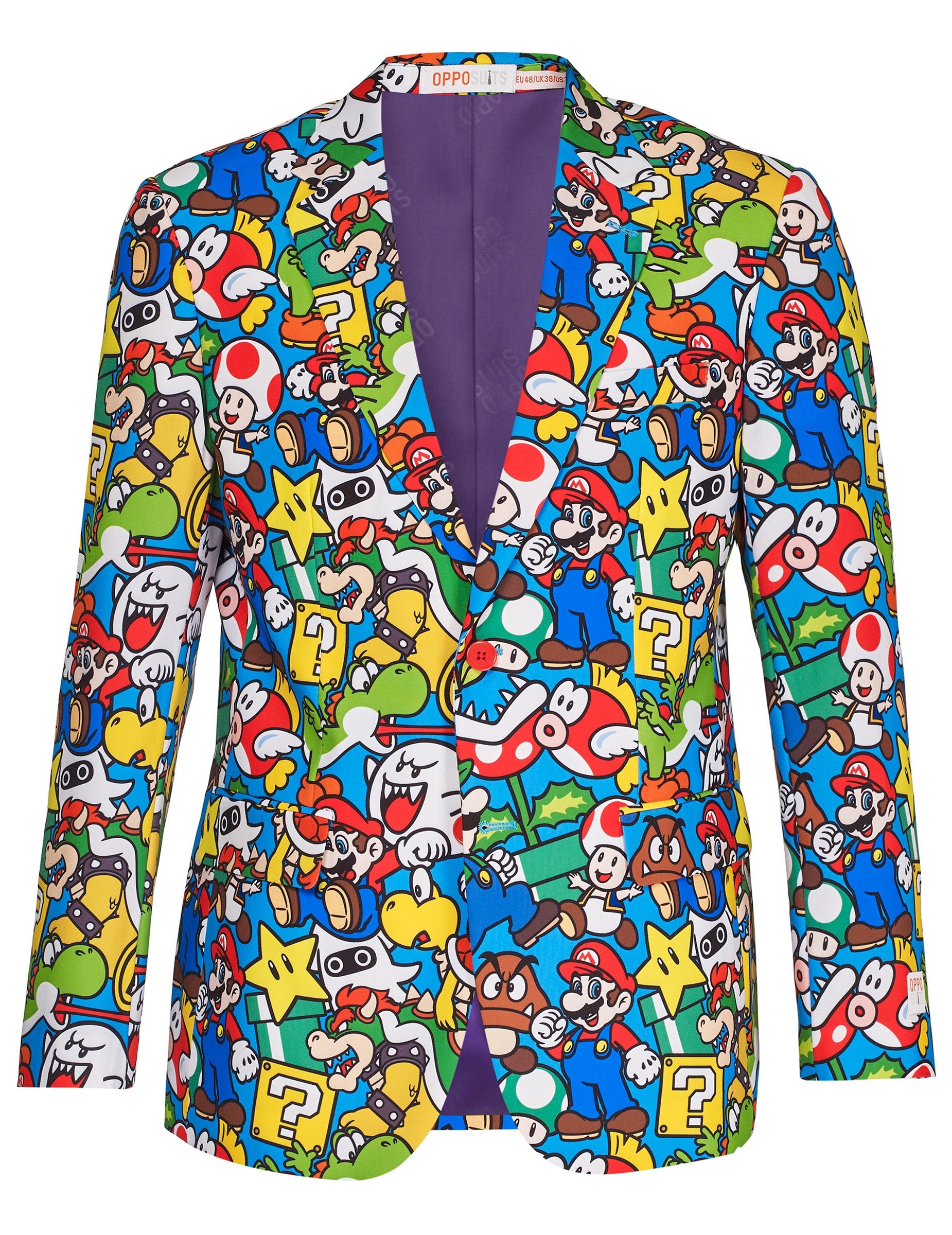 Ovaj kostim suprotne marke nalazi se pod službenom Super Mario licencom. Uključuje jaknu, kravatu i hlače. Ovo odijelo od 3 izrezano je u kvalitetnoj tkanini s uzorcima Super Mario videoigara poput: Mario, Luigi, Toad, Bowser i sva zla stvorenja igre za obojeno i originalno šik prikaz! Jakna za kostime je udobna, s dva lutkasta bočna džepa i jedan na razini povrća. Jakna se zatvara pomoću 2 plastična gumba na prednjem dijelu jakne. Hlače su ugodne za nošenje, odgovarajući jakni, ima 2 džepa. Zatvara se gumbom i patentnim zatvaračem. Izjava će završiti šik izgled kostima, samo ga morate vezati oko vrata! Ovaj prerušavanje gospodina Super Marija za odrasle bit će savršeno za večer prikrivenu na elegantnu temu ili na temu videoigara!