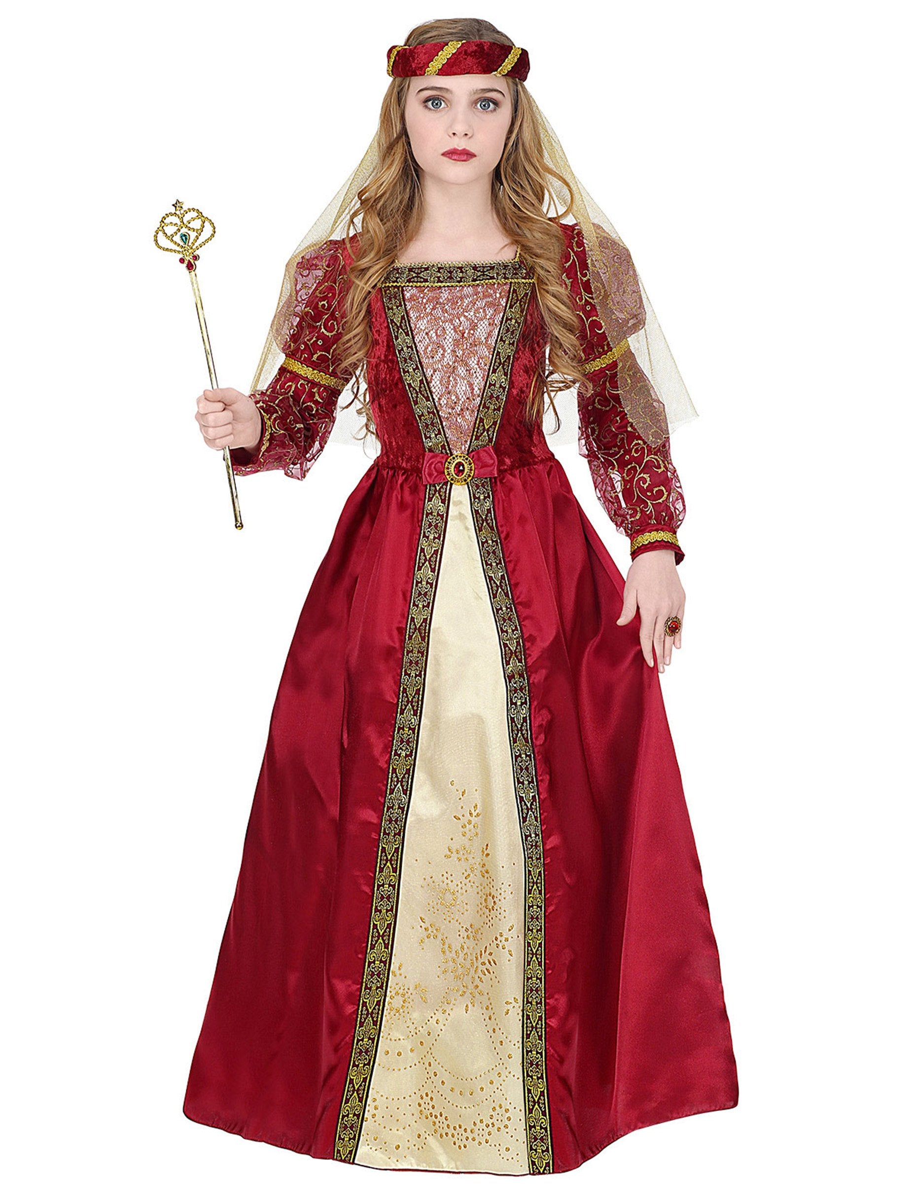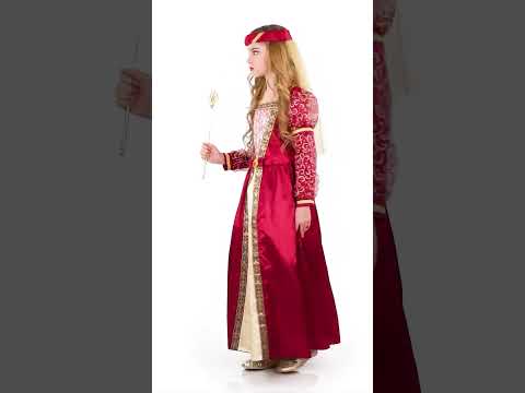Ova prerušavanje u srednjovjekovnu princezu za djevojku ima haljinu s Crinoline Petticoat -om, kapu s jedrom. Duga haljina je u crvenoj tkanini sa satenom. U sredini poprsja je PR+osjeća ploču s Rocard uzorcima. Lijepa crna i zlatna granica ističe oblike ove lijepe haljine. Dugi rukavi obloženi su crvenim velom sa zlatnim uzorcima. Lažni pojas savijen je veličine. Dno ove haljine je plamteno. U haljini je prisutan crinolinski štikla za održavanje oblika ove princeze iz srednjeg vijeka. Srednjovjekovna pokrivača u crvenom baršunastom besmrtnu tkaninu sa zlatnom granicom i zlatnim velom dovršava ovaj srednjovjekovni kostim princeze. S tim prerušavanjem pretvorite vašu kćer u najljepše princeze u cijelom kraljevstvu za karneval, temu prerušeni rođendan ili srednjovjekovni festival.
