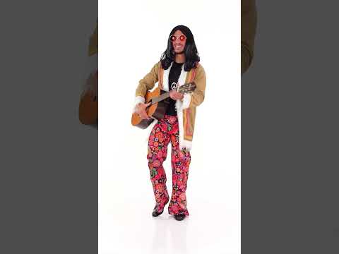 Ovaj hipi prerušen za muškarce sastoji se od jakne i hlača. Jakna je pješčana boja, s bijelim lažnim krznom na rubovima. Ukrašen je ružičastom i žutom obrubom. Izbrijane hlače ispisane su obojenim uzorcima na crnoj pozadini. Ovaj će kostim biti savršen za igranje hipi tijekom prerušene večeri.