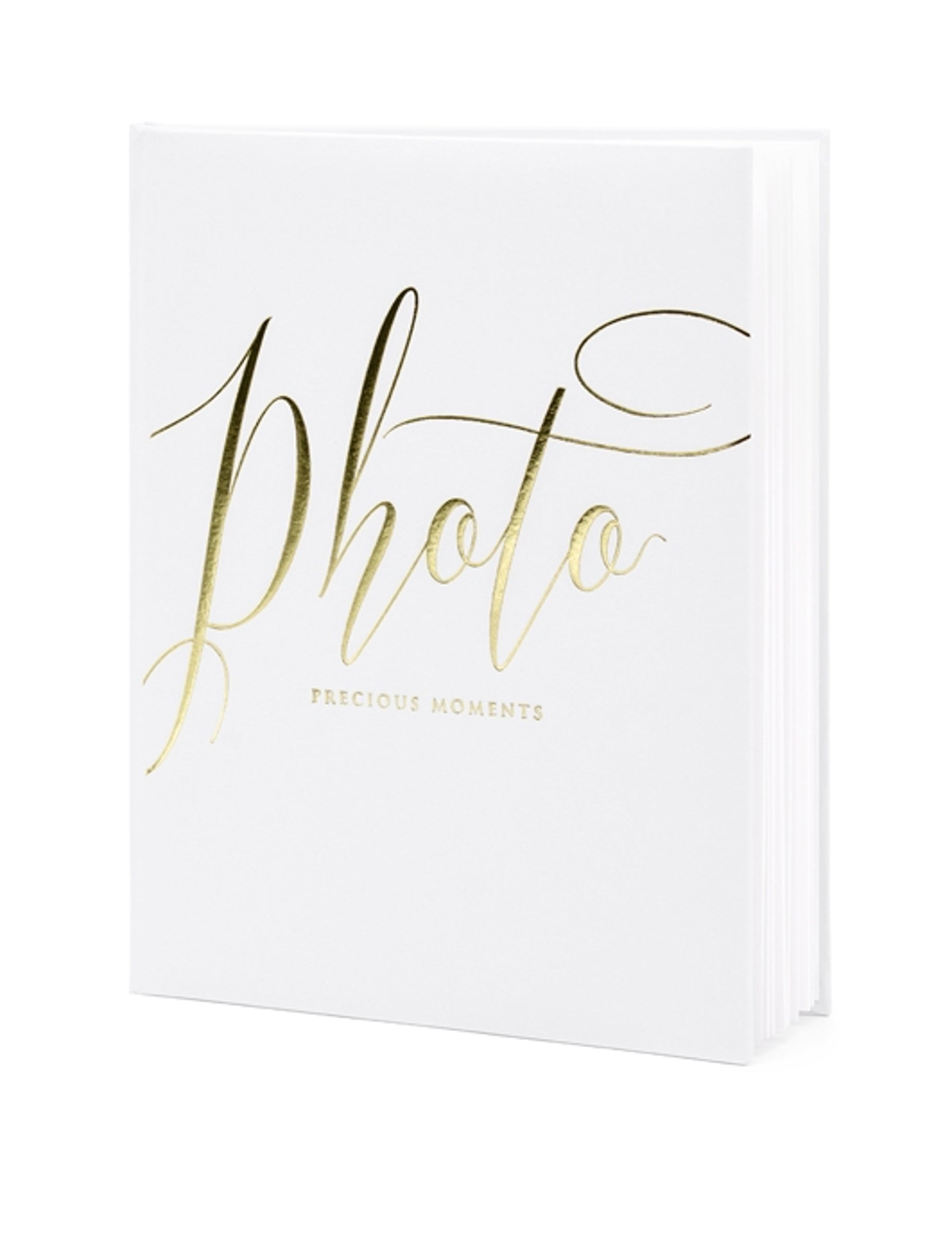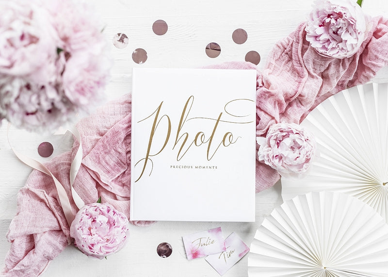 Sačuvajte dragocjene uspomene s ovim foto albumom dimenzija 20 x 24,5 cm. S elegantnim bijelim koricama i zlatnim natpisom "Photo precious moments" daje profinjen dodir. Ovaj album ima 22 stranice posvećene vašim najljepšim fotografijama. To je idealan dodatak za ovjekovječiti svaki trenutak vašeg vjenčanja na fotografijama.