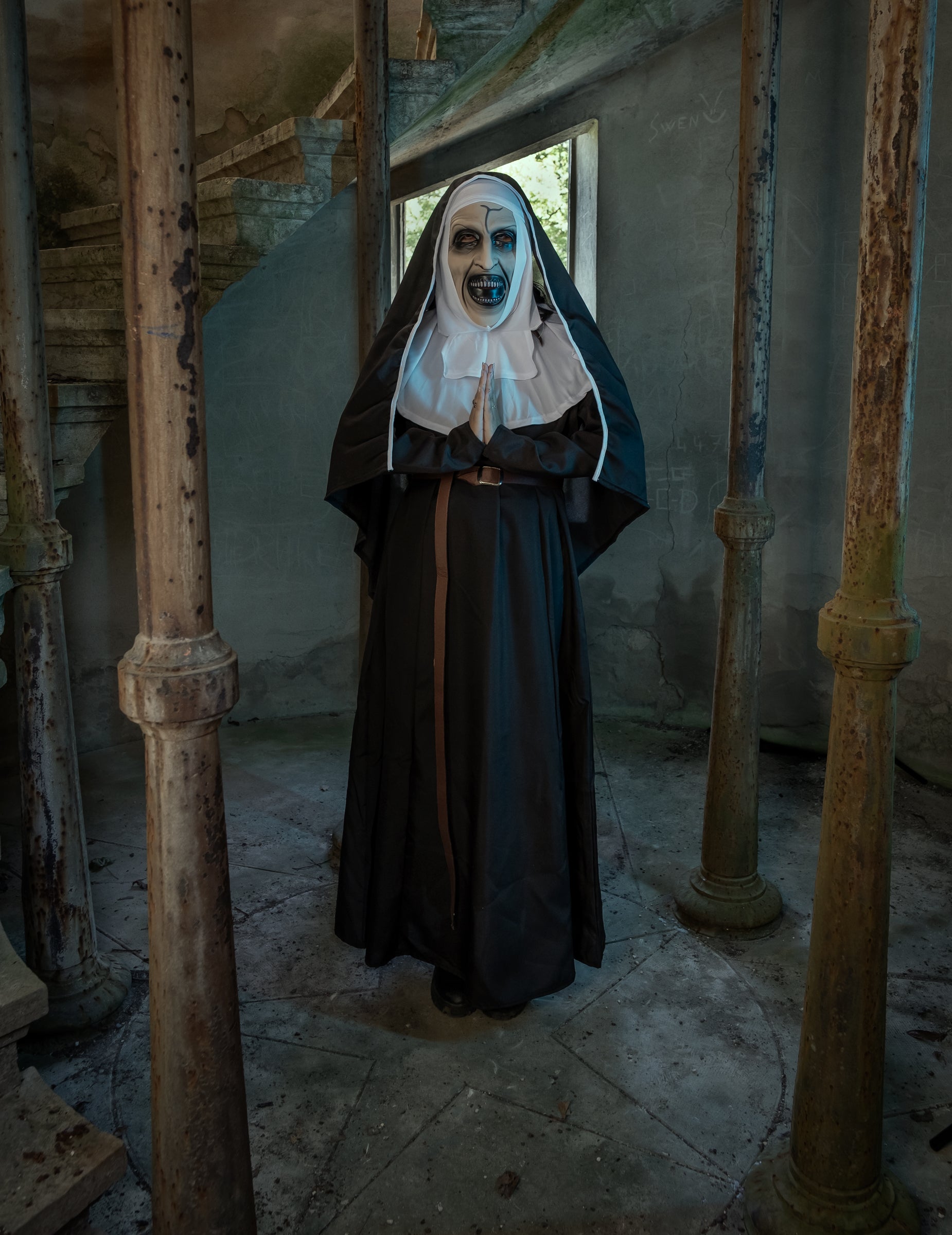 Ova se lota prerušava pod službenom licencom. Ova maskiranje sastoji se od haljine, pojasa, maske s obrubljenom pokrivačem. Crna haljina je crna i ima duge rukave. Smeđi će pojas biti pričvršćen preko haljine kako bi se označio struk. Što se tiče maske, ona je u PVC -u i predstavlja zastrašujuće lice redovnice. Otvorena je na razini očiju radi bolje vidljivosti. Crna kapica od tkanine ušije se na masku kako bi se prerušila još više realizma. Ovaj će kostim biti savršen za uplašenje svojih najmilijih povodom zabave za Noć vještica!