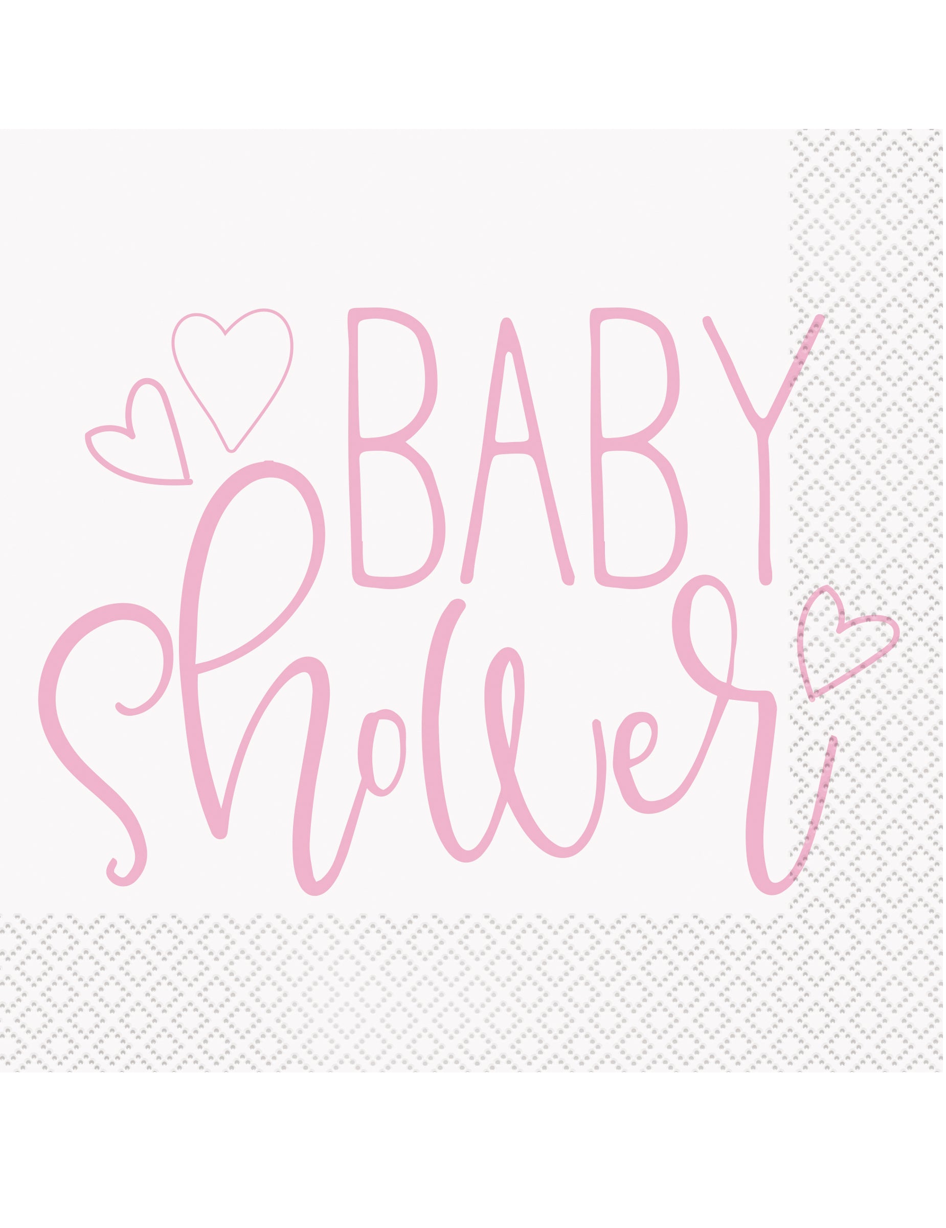 Ce lot comprend 16 serviettes en papier pour fêter une naissance. Une fois déballées, elles affichent un format de 33 x 33 cm. Le design blanc est complété par le message « baby shower » écrit en rose. Ces serviettes sont les accessoires indispensables pour une jolie table de baby shower fille.