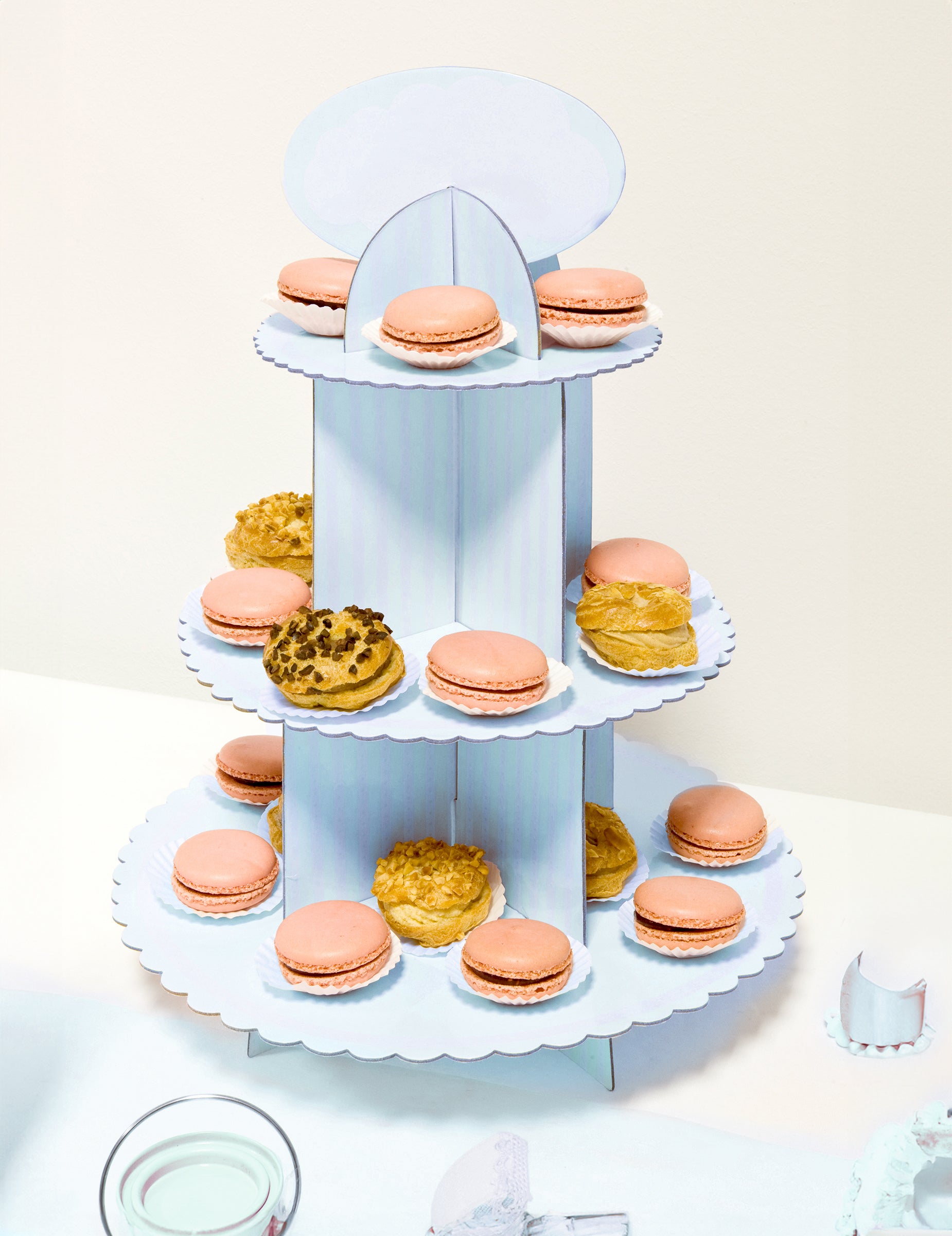 Bijelo-plavi kartonski stalak za kolačiće 30 x 42 cm za baby shower