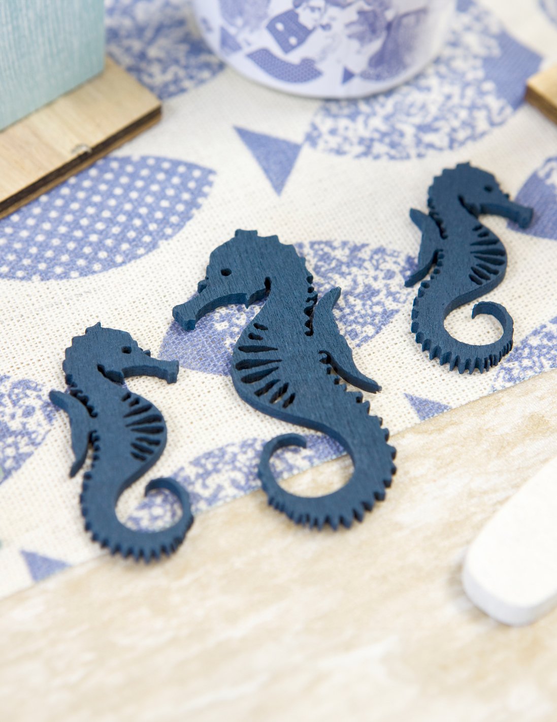 10 plavih hipokampanih drvenih konfeta 6 i 4,5 cm
