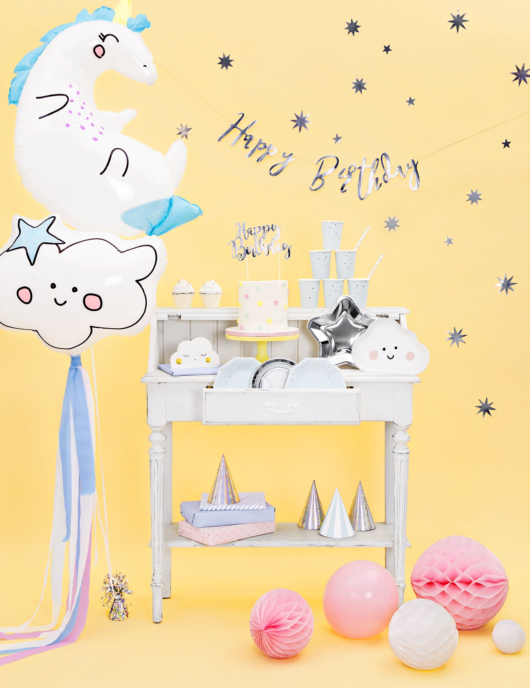Sublimez votre pâtisserie avec ce cake topper en carton mesurant environ 22,5 cm. Cet accessoire décoratif arbore l'expression « happy birthday » avec un superbe effet argenté métallisé. Idéal pour personnaliser votre dessert, installez simplement ce cake topper sur votre création pour un anniversaire étincelant.