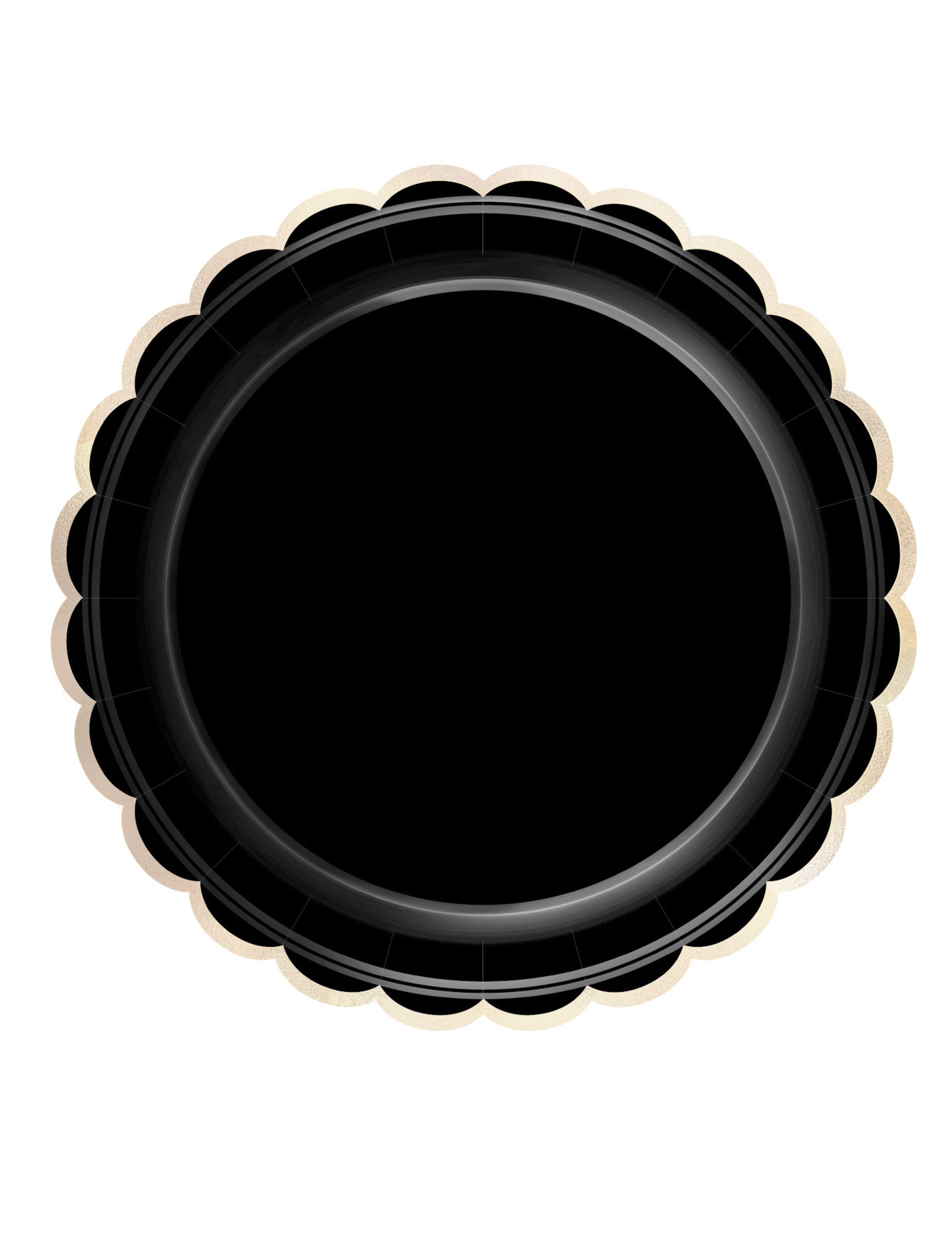 Dodajte dašak elegancije svom prijemu s ovim setom od 8 komada tanjuri Izrađeno od kvalitetnog kartona. Promjera 23 cm, Imaju sofisticirani crni dizajn naglašen nazubljenim rubovima sa zlatnim detaljima. tanjuri savršeni su za uljepšavanje dekoracija stola tijekom brak ili rođendan svečan.