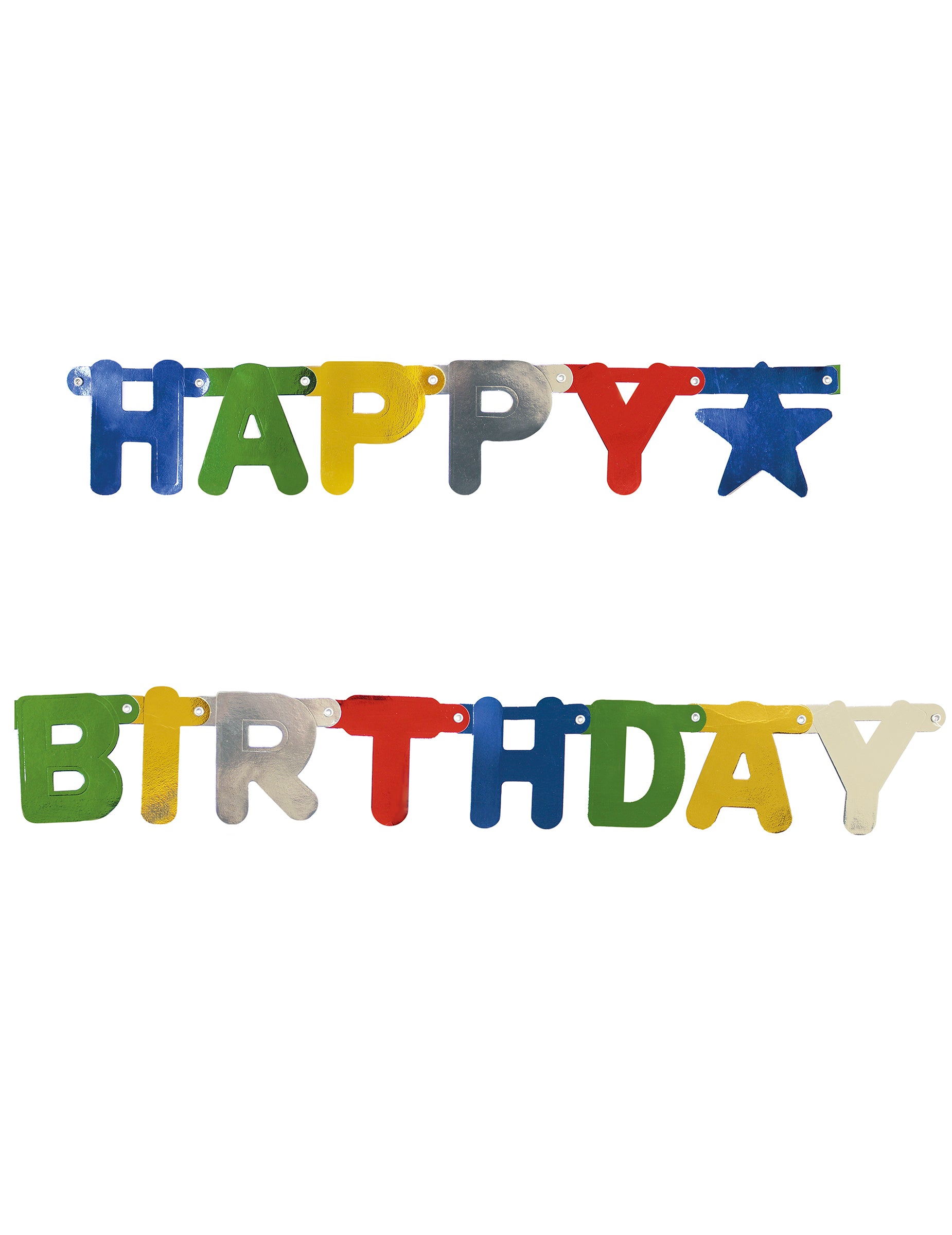 Ovaj artikulirani vijenac sastoji se od pisama koja čine poruku "Sretan rođendan" slova su izrađena od metaliziranog i šarenog kartona. Garland mjeri oko 156 cm duljine E 11,3 cm širine. Ovaj sretni rođendanski vijenac bit će savršen za vaš rođendan.