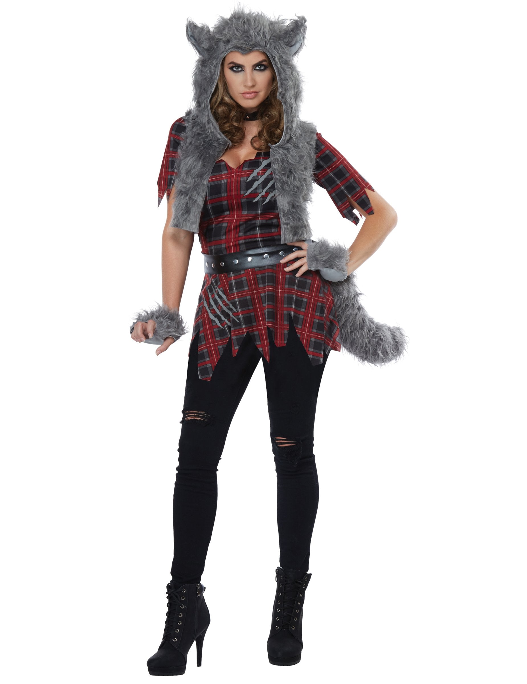 Ovaj vuk prerušen za žene sastoji se od tunike, kapuljače, par rukavica i pojasa s priloženim repom (hlače i cipele nisu uključeni). Crvena i crna karirana tunika izrezana je na dnu i na krajevima rukava. Kratki file sa sivim lažnim krznom i s kapuljačom s vučjim ušima dovršava odjeću. Tada ćete pronaći pojas na kojem je ušiljen vuk rep u sivom lažnom krznu. Konačno, krznene rukavice doći će usavršavati ovaj vuk prerušen za još stvarniji izgled. Savršen kostim za proslavu Noći vještica sa svojim prijateljima!