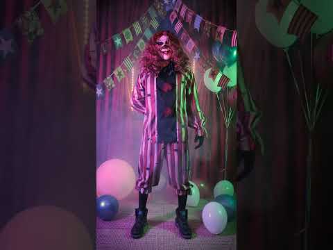 Ovaj demonski klaun prerušen za odrasle sastoji se od košulje, pantacourta, ovratnika i pola maske. Crvena i bijela prugasta košulja ima crnu traku u sredini s crvenim pompima. Crni ovratnik usredotočit će se na vrat za realniji učinak. Pantacourt s košuljom savršeno će dovršiti ovu prerušavanje. Pola maska predstavlja demonsko lice klauna sa zastrašujućom šminkom i denticijom. Odlučite se za ovu prerušavanje tijekom Noći vještica kako biste uplašili sve svoje najmilije i osvojili trofej najstrašnijeg prerušavanja tijekom ove večeri!