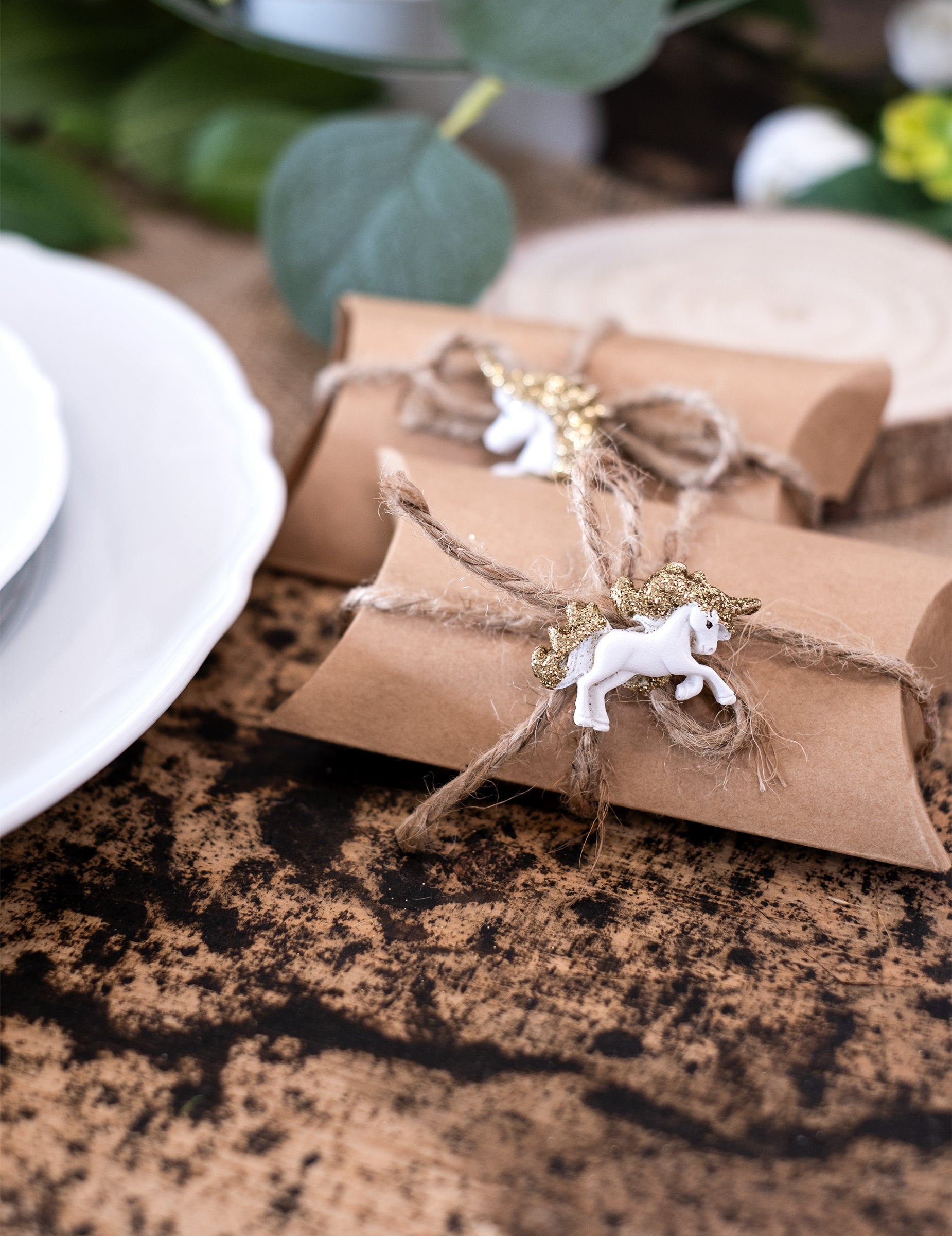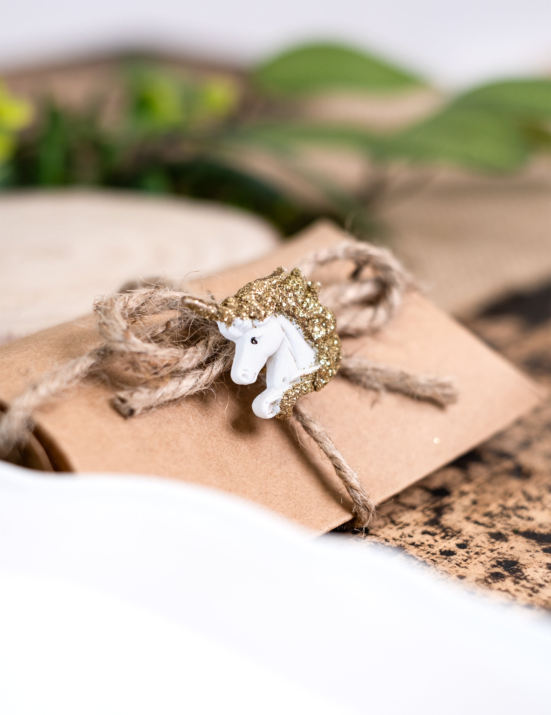 6 licornes en résine adhésives blanches et paillettes dorées 3 cm
