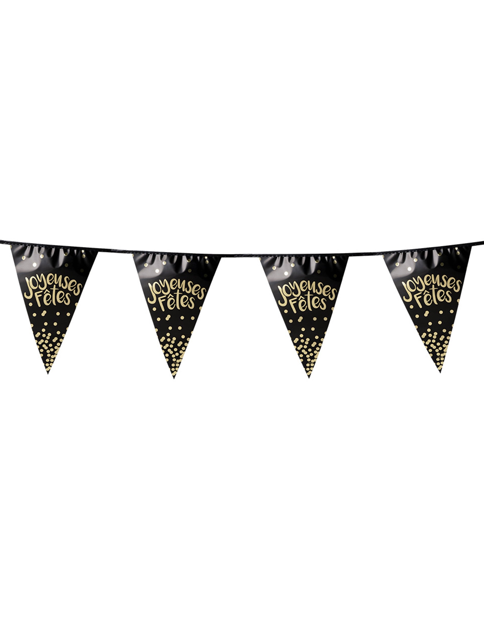 Crno-zlatna metalik girlanda s blagdanskim zastavicama od 4 m
