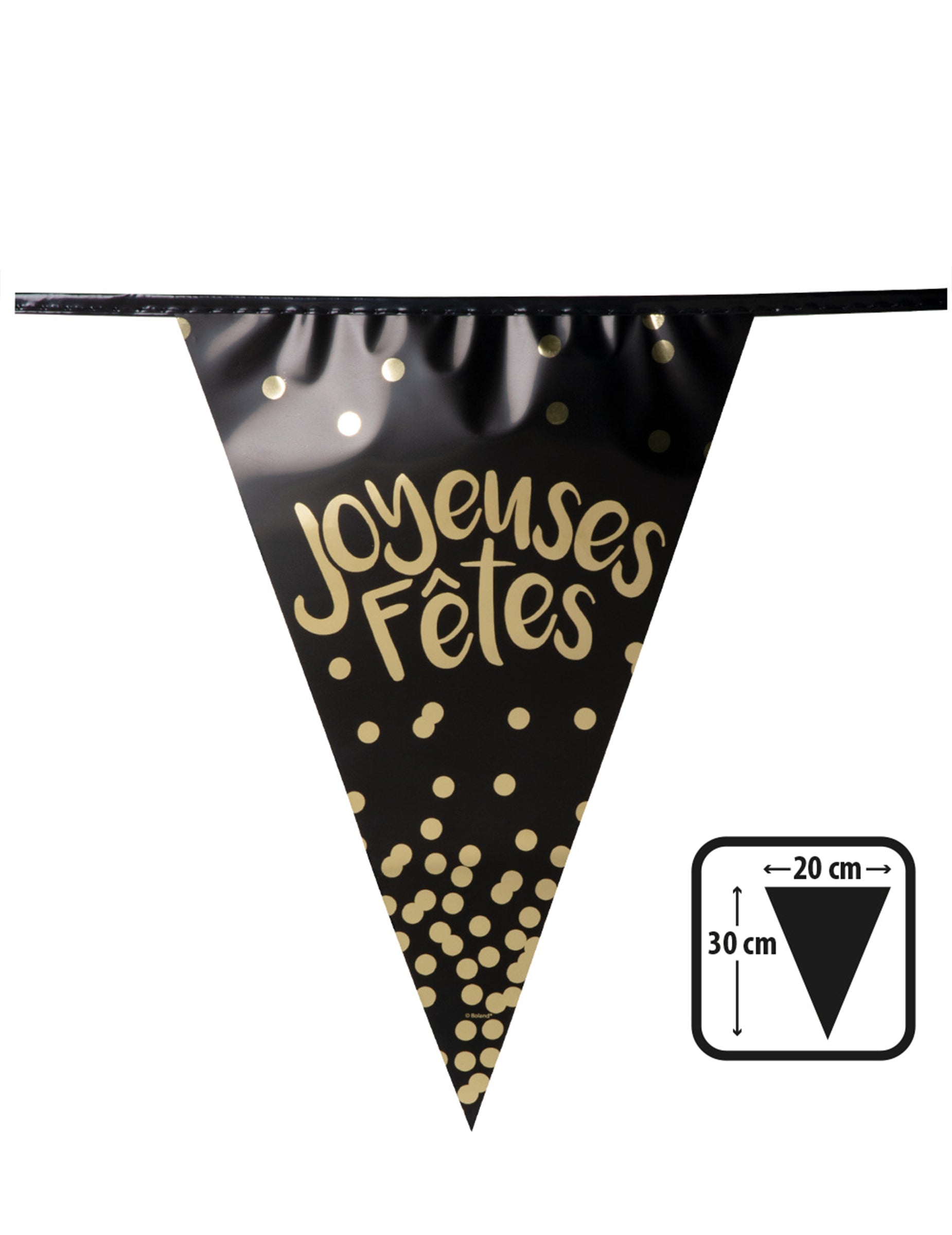 S ukupnom duljinom od 4 metra, ovo vijenac sastoji se od 10 elegantnih zastavaca. Svaka zastavaca ima crnu pozadinu ukrašenu konfetima i porukom " Sretni blagdani " metalnim zlatnim slovima. To je savršen dodatak za poboljšanje vašeg proslave kraja godine s elegantnim i blistavim dodirom.