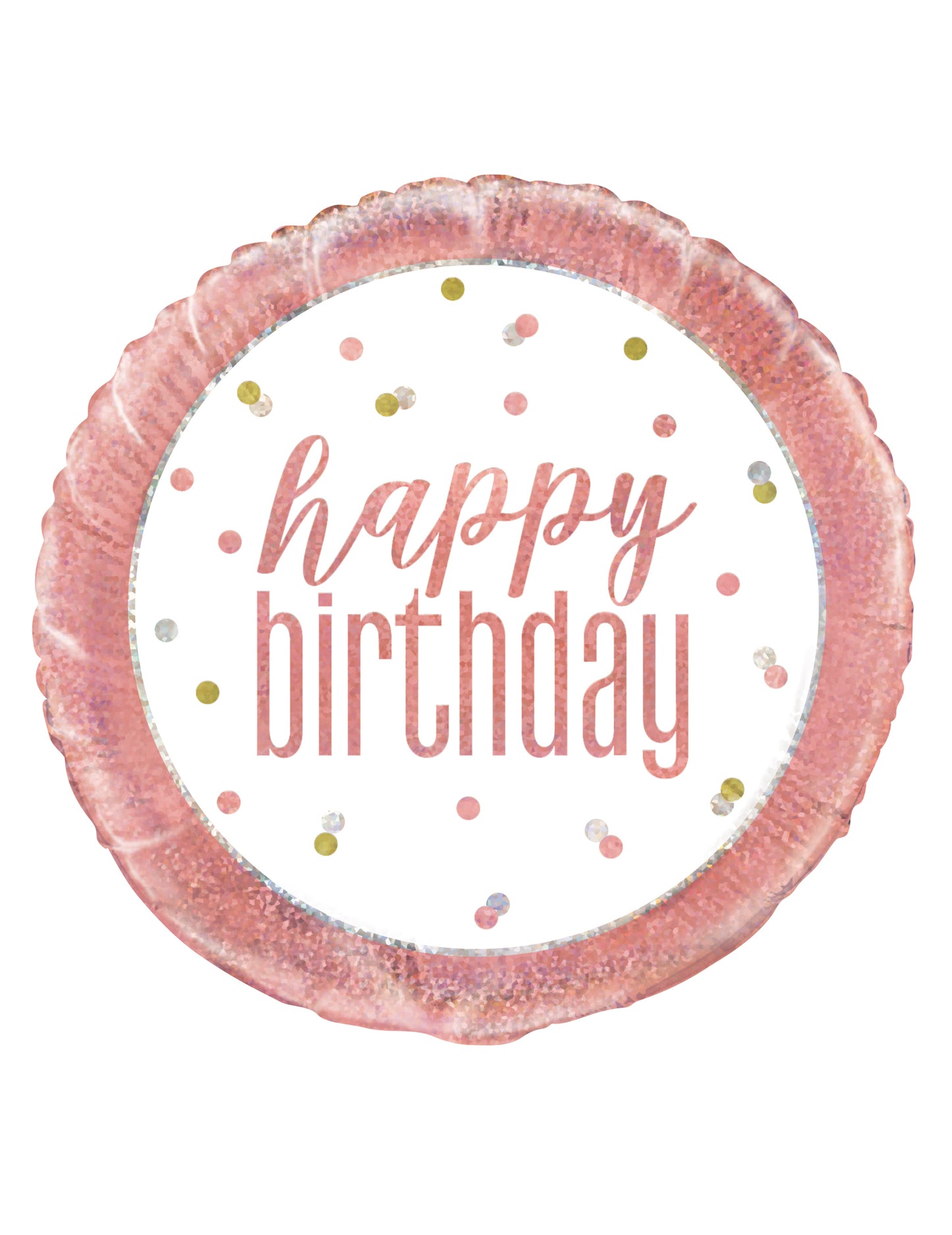 Ova rođendanska lopta izrađena je od aluminija. Mjeri otprilike 45 cm visine, bijela je u sredini s natpisom "Sretan rođendan" ružičasto i ružičasto, zeleno i sivo grašak. Njegov obris je ružičasti sa sjajem. Može se napuhati helijem ili zrakom pomoću slame. Ova će lopta biti savršena za ukrašavanje vašeg interijera tijekom vašeg ružičastog i bijelog rođendana!