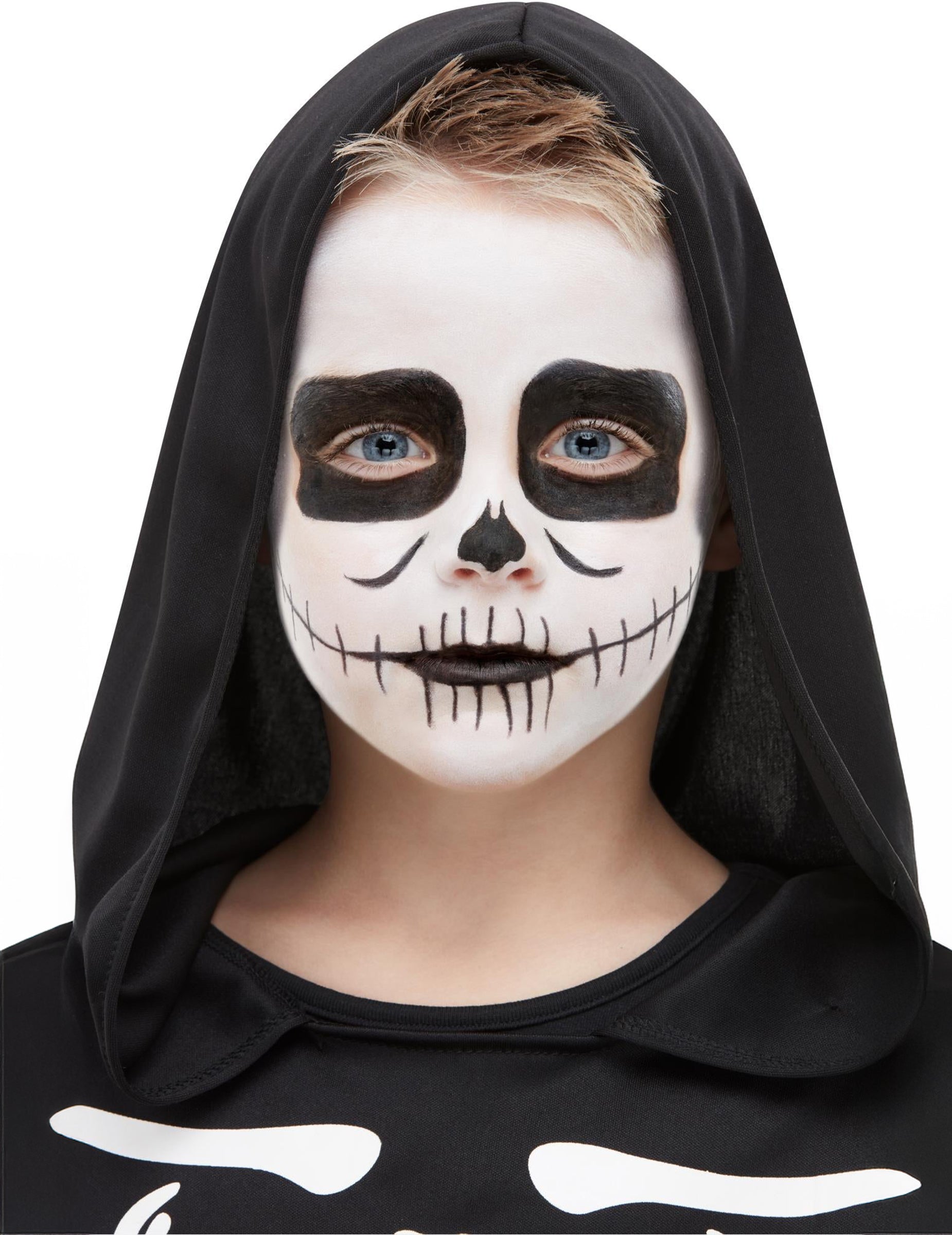Ovaj dječji komplet za šminku sastoji se od crne šminke, bijele šminke, crne olovke, spužve i aplikatora. Zahvaljujući ovom kompletu, imat ćete osnovne stvari za vrhunsku šminku skeleta. Započnite s bijelom bazom na licu, izbjegavajući oči. Tada samo morate očitati oči u crnom, a zatim povući usta. Ovaj će komplet biti idealan za dovršavanje kostura s kosturom ili kosilicom za Noć vještica. Sastojci: Bijelo: sjemensko ulje ricinus communis, gliceril stearat, peararat PEG-100, parafinski licum, Ceteareth-20, sorbitan lauze, cera alba, polisorbat 20, fenoksietanol, sorbinska kiselina, tokoferol. (+/-): CI 77891, CI 77491, CI 77492, CI 77499, CI 77007, CI 75470, CI 15850, CI 45380, CI 73360, CI 1588, CI 1585, CI 124 , CI 19140, CI 15985, CI 47005, CI 42090 Noir: Ricinus Communis Seed Oil, Glyceryl Stearate, PEG-100 Stearate, Paraffinum Liquidum, Ceteareth-20, Cera Alba, Sorbitan Laurate, Polysorbate 20, Phenoxyethanol, Sorbic Acid, Tocopherol. (+/-): CI 77891, CI 77491, CI 77492, CI 77499, CI 77007, CI 75470, CI 15850, CI 45380, CI 73360, CI 1588, CI 1585, CI 124 , CI 19140, CI 15985, CI 47005, CI 42090. Crna olovka: sjeme ulje sjemenki ricinus communis, talc, cera alba, candelilla cera, parafinum flukum, sorbitan laura, fenoksietanol, sorbinska kiselina, tokoferol. (+/-): CI 77891, CI 77491, CI 77492, CI 77499, CI 77510, CI 77007, CI 15850, CI 45410, CI 73360, CI 12085, CI 11680, CI 19140, CI 15985, CI 42090.