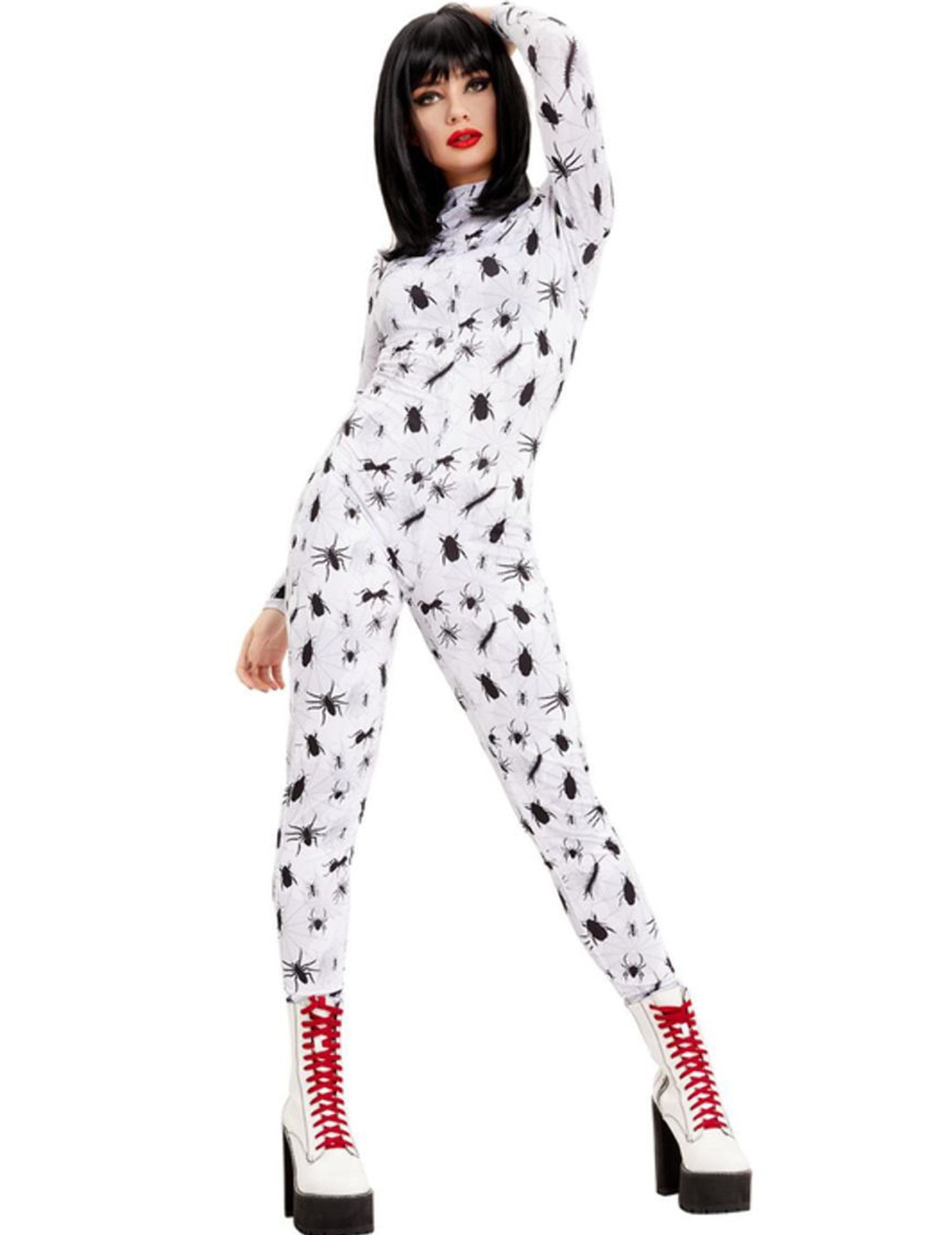 Ova kombinacija za žene je bijela, s crnim uzorcima. Oni predstavljaju pauke i druge insekte. Izrađena je u elastičnoj tkanini koja će se nositi poput druge kože. Bit će savršeno za večer voitre prerušenog na Halloween večer.