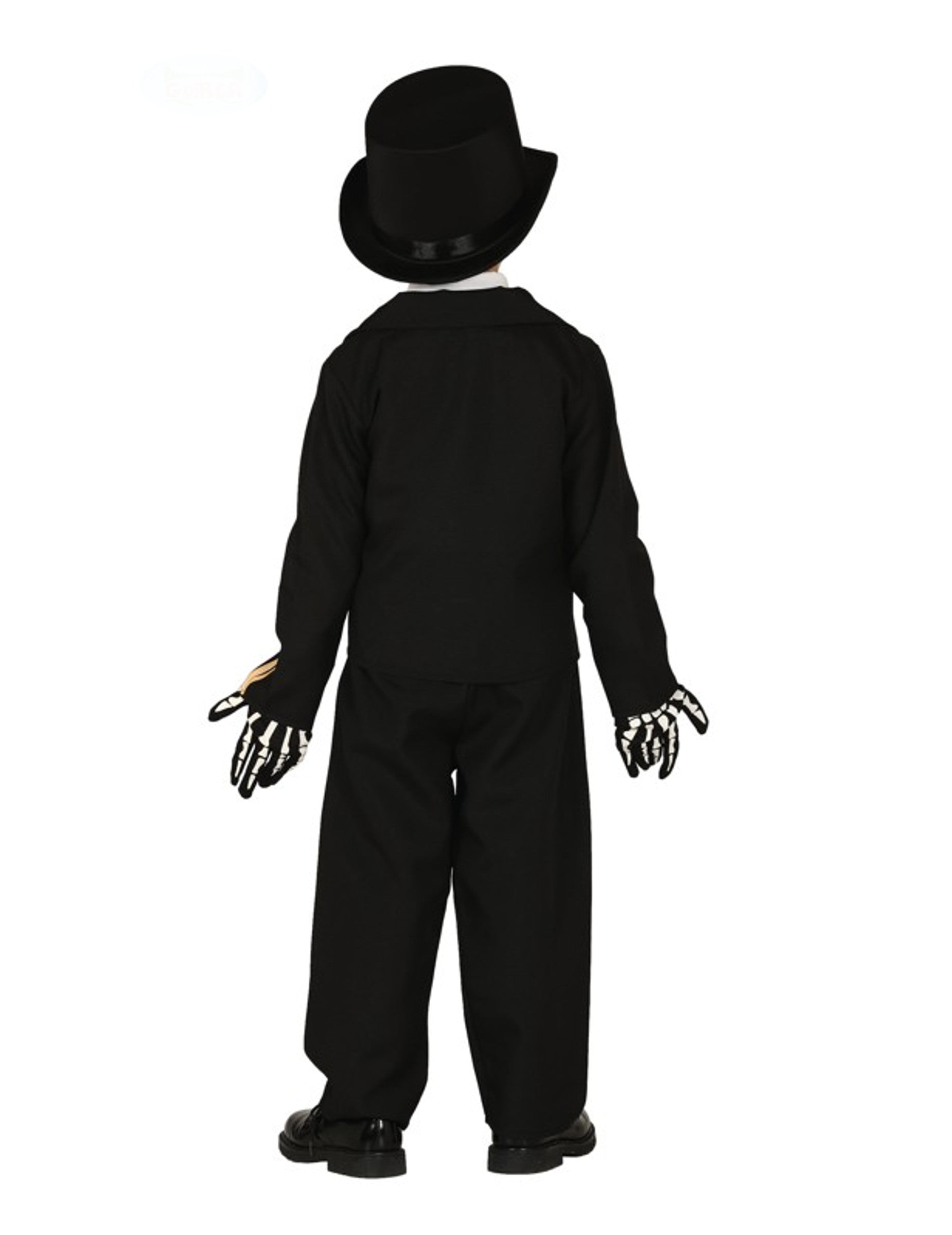 Ovaj elegantni kostim kostura za dječaka sastoji se od jakne i hlača (košulja, cipele i šešir nisu uključeni). Jakna i hlače su crne s kosturnim tiskom. Vaše će dijete biti elegantno s ovim kostimom kostura za Noć vještica.