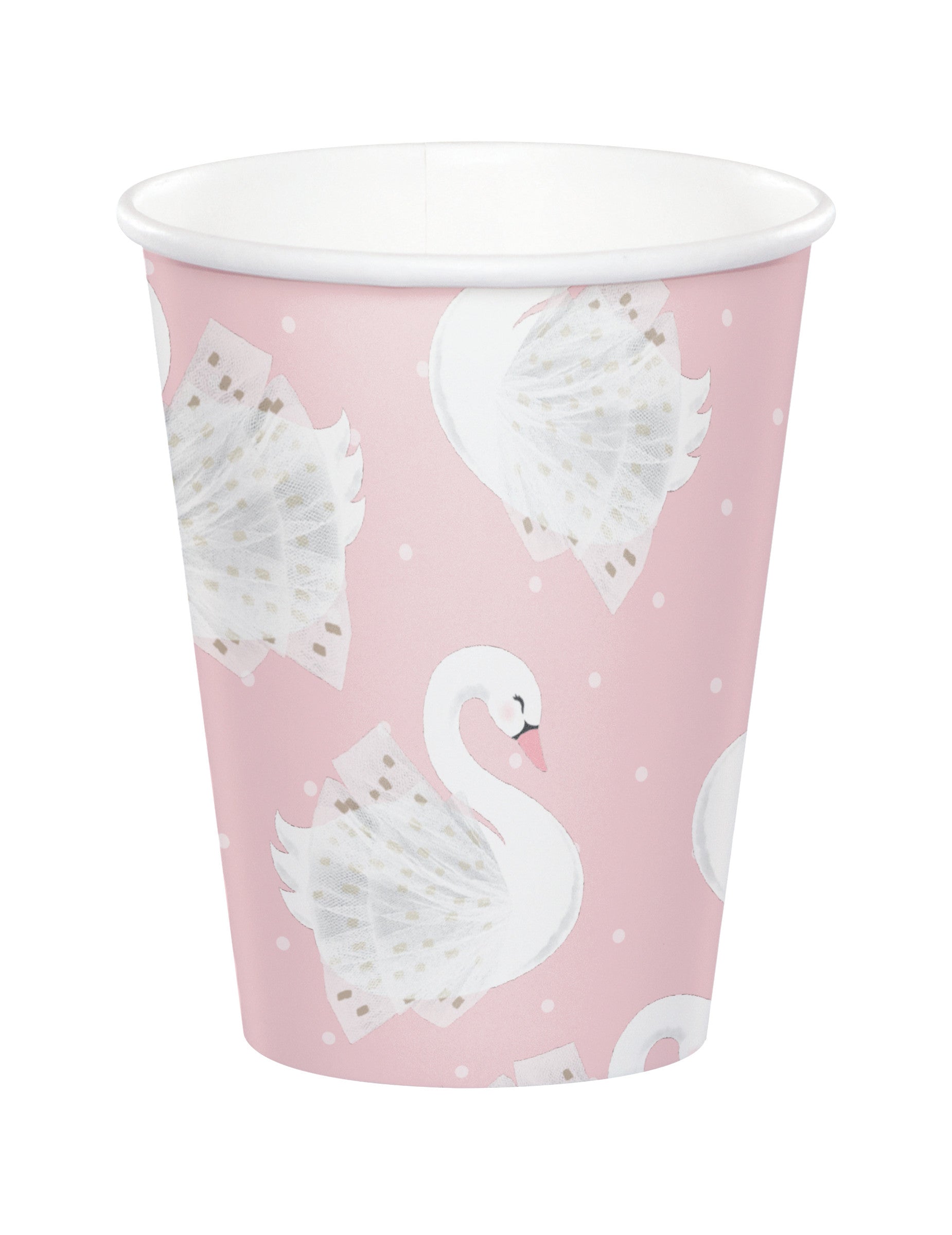 Ce lot comprend 8 gobelets en carton jetables illustrés de gracieux cygnes sur un fond rose tendre. D'une contenance de 266 ml, ces gobelets sont parfaits pour embellir votre décoration de table. Ils apporteront une note poétique et délicate lors d'un anniversaire cygne ou d'une baby shower.