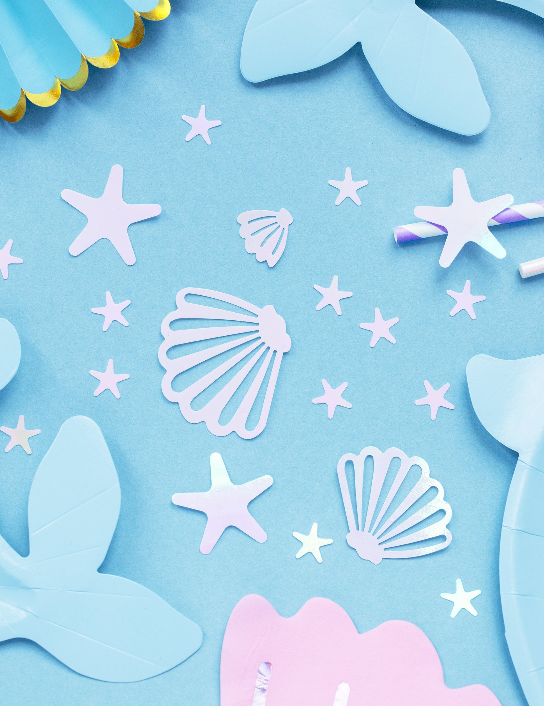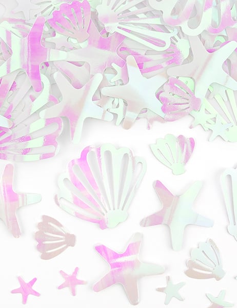 Sublimez votre décoration avec ce sachet de 23 g de confettis aux reflets féeriques. Ce kit contient des coquillages mesurant entre 2 et 5,5 cm ainsi que des étoiles de mer de 1,5 à 4 cm, le tout dans une élégante teinte rose iridescent. Pratiques, 6 adhésifs double-face sont fournis pour fixer vos décors facilement. C'est l'accessoire idéal pour un anniversaire réussi sur le thème des fonds marins.