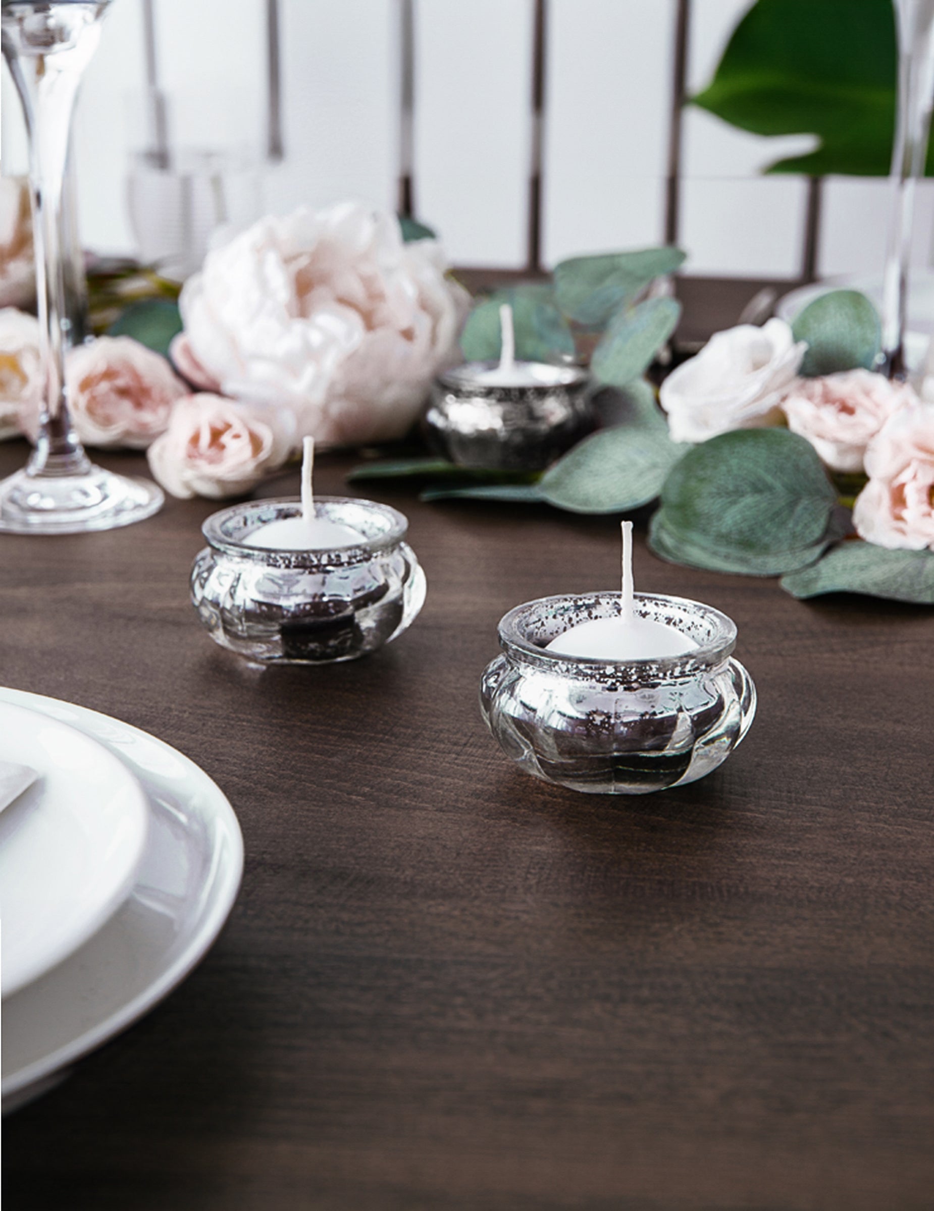 4 srebrna zrcalna staklena držača za svijeće 6 x 3 cm za stol