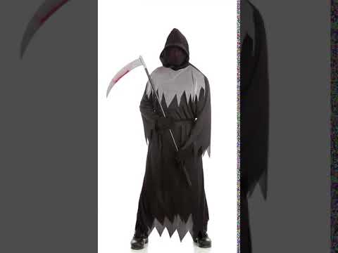 Ovaj crno -bijeli kostim žetela je za odrasle, sastoji se od tunike s kapuljačom s maskom koja skriva lice i pojas. Ova je tunika crna, izrezana na vrhove, s dugim plamenim rukavima. Bijela tkanina prekriva ramena, također izrezana na savjete. Na kapuljačama je crna s crnom maskom koja pokriva lice što omogućava unošenje zastrašujućeg aspekta u ovaj kostim. Remen je crna tkanina za vezanje na veličini da bi se prilagodila. Ovaj crno -bijeli kostim žetela bit će savršen za vašu prikrivenu večer.