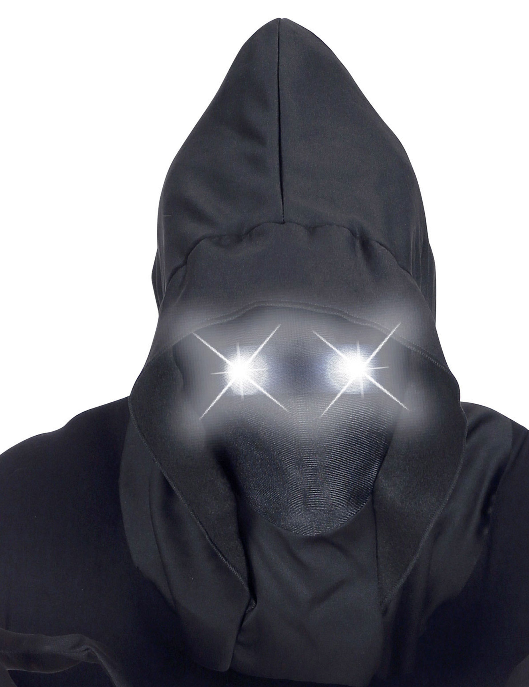 Ova puna maska ​​namijenjena je odraslima. Puna je i uključuje i crnu kapuljaču i crnu tkaninu koja pokriva lice čineći ga nevidljivim. Ima bijele lagane oči (baterije nisu uključive). Ova će maska ​​biti savršen dodatak za dovršavanje prerušavanja tijekom prerušenog događaja.