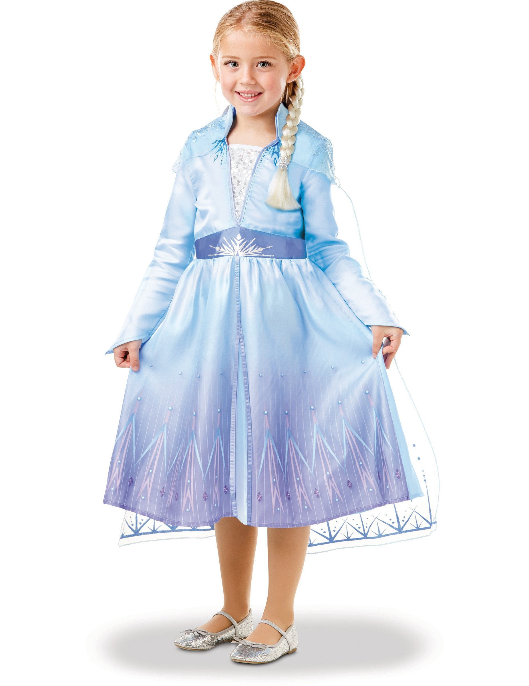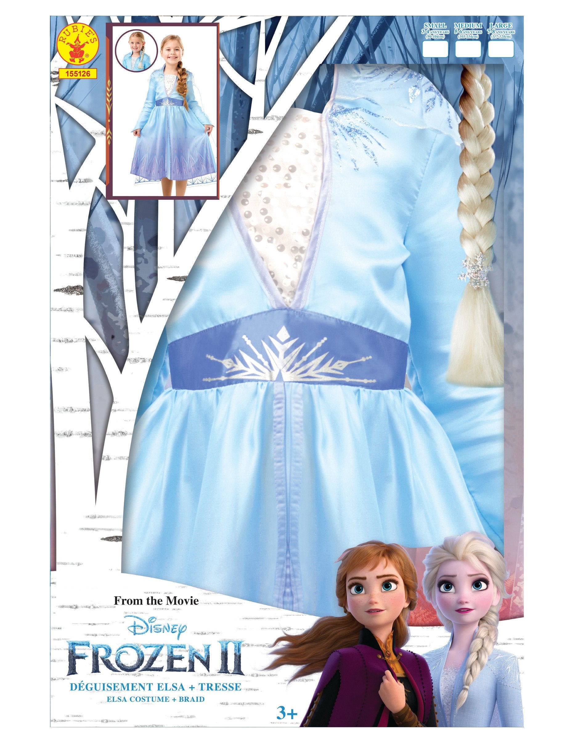 Ova kutija za kostime ELSA za kćer je pod službenom licencom Snježna kraljica II. Kutija uključuje haljinu s integriranim ogrtačem i pletenicom. Duga haljina od ležišta plava je s imitacijskim bodicom u bijeloj satenskoj tkanini. Cape je integriran u prerušavanje, dugačak je u tiskanom jedra. Dio suknje je plavi i ukrašen remenom pahuljice. Kutija također uključuje plavušu od 30 cm koja savršeno pristupa ovom potpunom prerušavanju ELSA -e. Ima prilog češljanju kako bi se mogla lako staviti. Vaša će se djevojčica pretvoriti u snježnu kraljicu, Aninu sestru i zaštitnicu kraljevstva Arendelle!