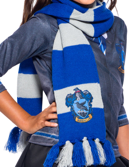 Ovaj šal Ravenclaw je pod službenom licencom Harry Potter. To je s plavim i bijelim prugama, a mjeri oko 2 m duljine. Grb kuće Lavedaigle pletena je na ovom šal -u. Ovo će biti savršeno za dovršavanje kostima Hogwarts Sorcerer za tematsku zabavu Harry Potter.