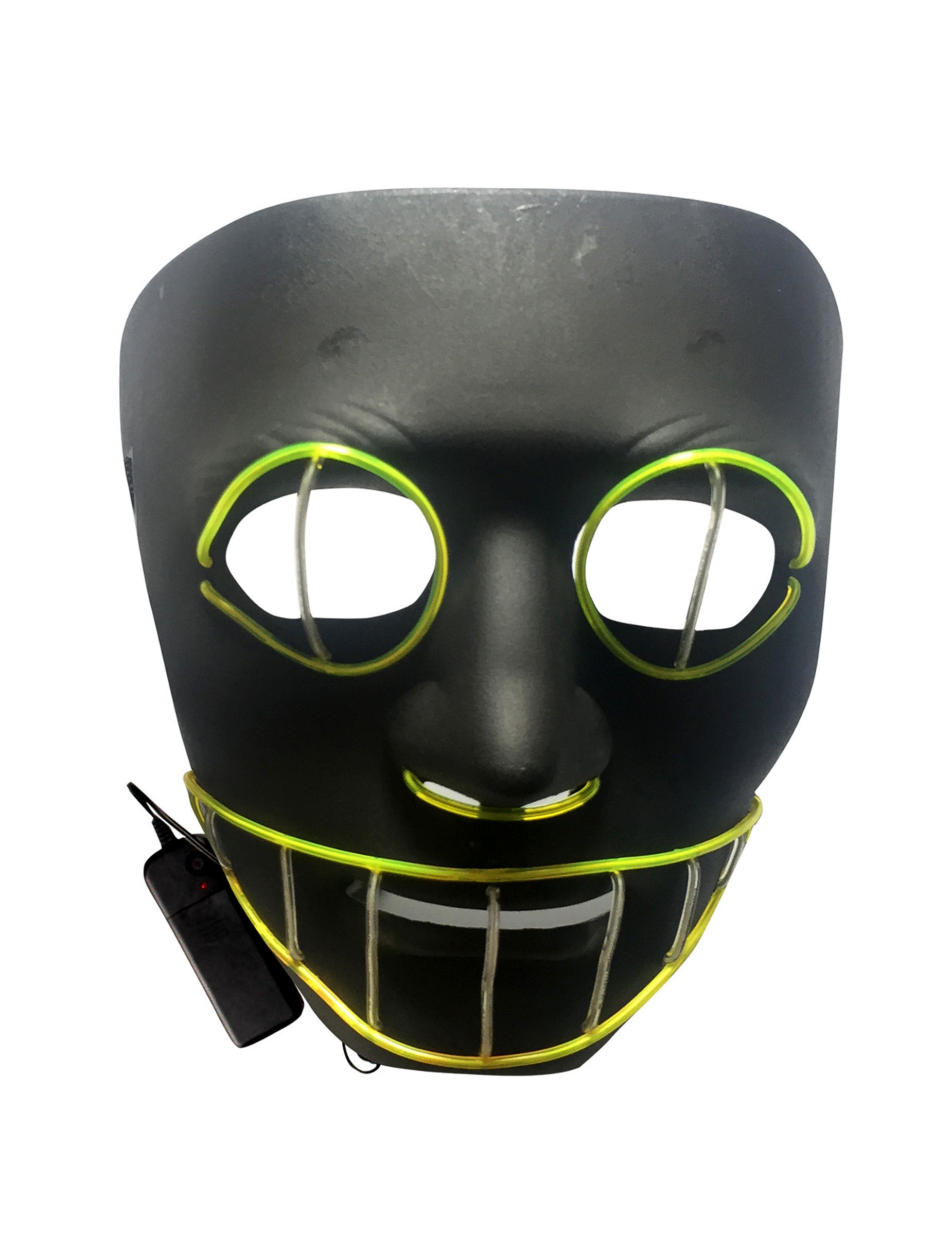 Ova luksuzna maska ​​za mačke namijenjena je odraslima. Ova maska ​​radi s baterijama (nije uključena). Ova je maska ​​izrađena od crne plastike s LED žicama žute svjetlosti. Ima 3 različite sekvence paljenja: kontinuirano, brzo bljesak ili sporo bljesak. Radi s 2 AA baterije koje nisu uključene. Odlučite se za neprepoznatljivi i zastrašujući izgled večeri za Noć vještica.