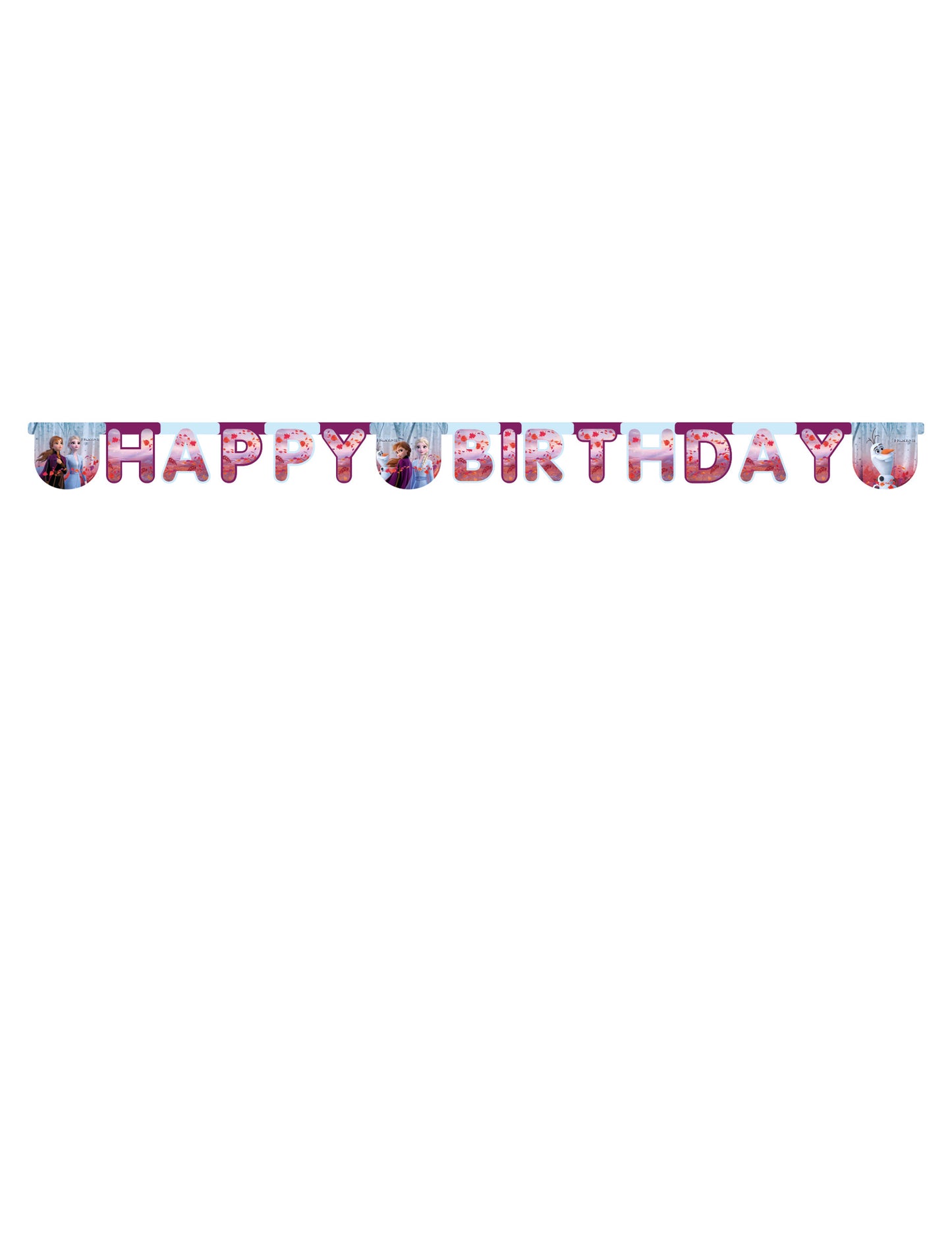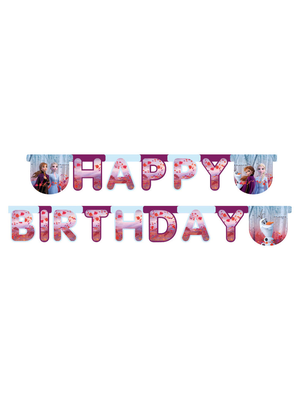 Ovaj rođendanski vijenac pod službenom licencom Snježna kraljica 2 mjeri otprilike 200 x 16 cm. Sastoji se od zastavica i kartonskih pisama koja tvore poznatu poruku "Sretan rođendan". Razlozi predstavljaju snježnu kraljicu Elsu, njezinu sestru Annu i Olaf. Proslavite rođendan svoje kćeri s ovom snježnom kraljicom 2 vijenca.