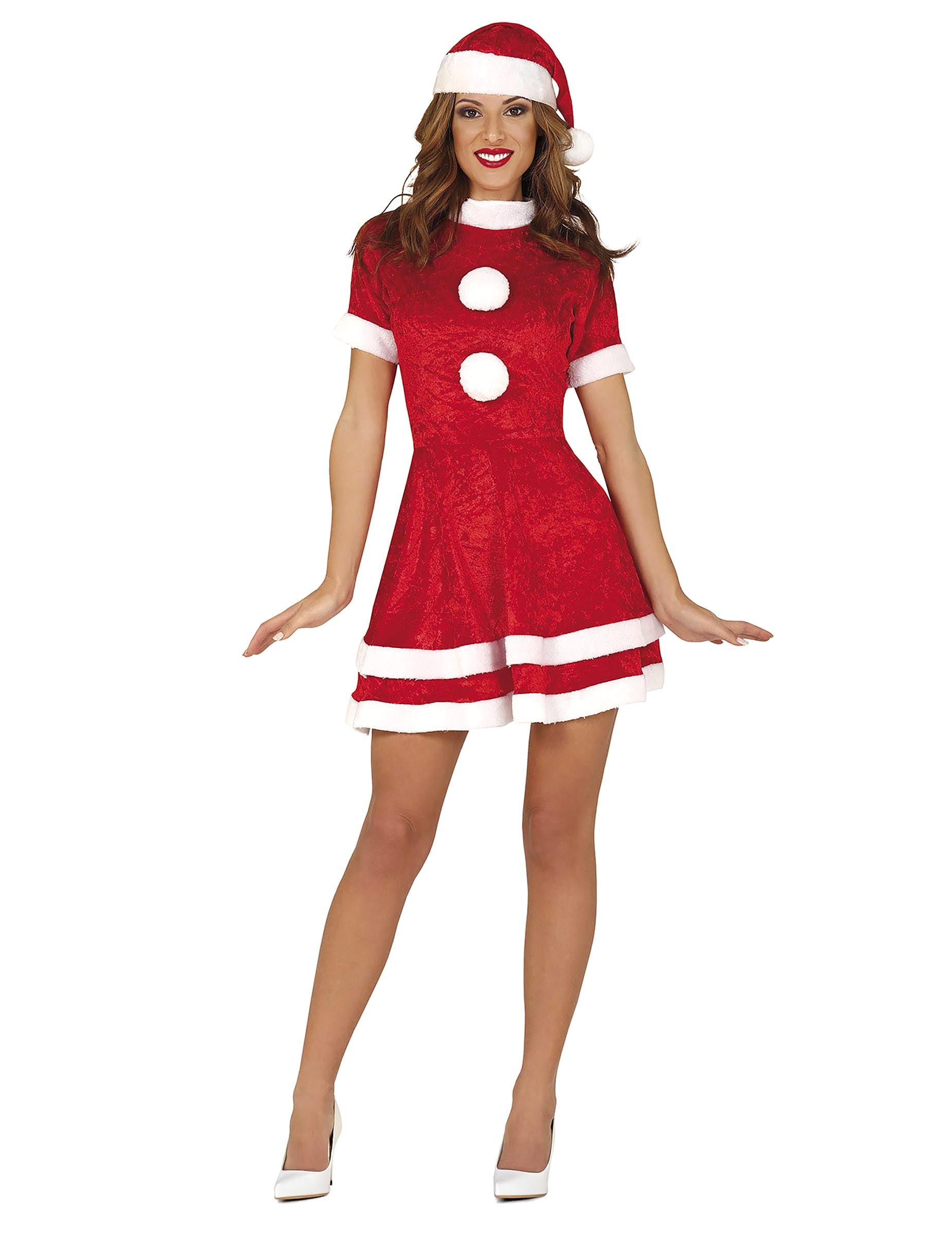 Ova seksi božićna majka prerušena za žene sastoji se od haljine i šešira. Kratka haljina je u tkanini od baršunastih efekata. Crvena je s bijelim trakama na ovratniku, rukavima i na dnu. Bijeli pompi također su prisutni na poprsju. Majčin božićni šešir dovršava ovaj kostim. Crveno je i bijelo, s bijelim pompom. Ovaj će kostim biti savršen za pratnju Djeda Mraza u svojoj distribuciji darova.