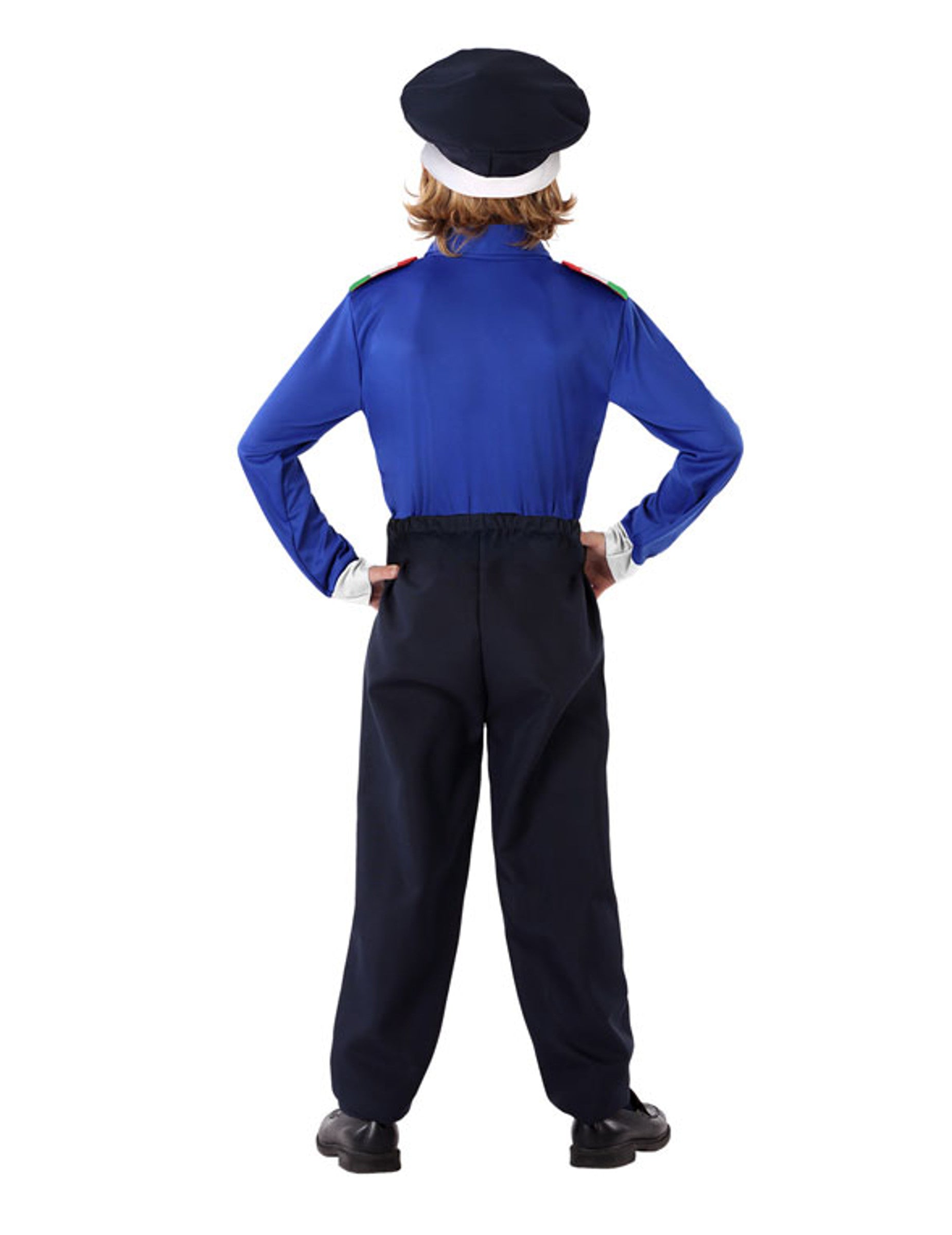 Ovaj policijski kostim Carabinieri namijenjen je dječaku. Uključuje šešir, vrh kao i hlače (pištolj i cipele nisu uključeni). Tijelo Carabinieri talijanska je vojna sila, prerušavanje stoga oponaša uniformu ovih policajaca mornarsko plavom bojom koja ima Ecusson u bojama Italije na ramenu i omogućava održavanje bijelog šal -a. Košulja ima V -nok, kao i bijele gumbe i rukave. Hlače su crne s crvenom prugom na vanjskoj strani noge. Obucite crnu igračku s bijelom trakom i bojama Italije kako biste dovršili svoj kostim. Ovaj talijanski policijski kostim bit će savršen za karneval ili za zabavu prerušenu s prijateljima!