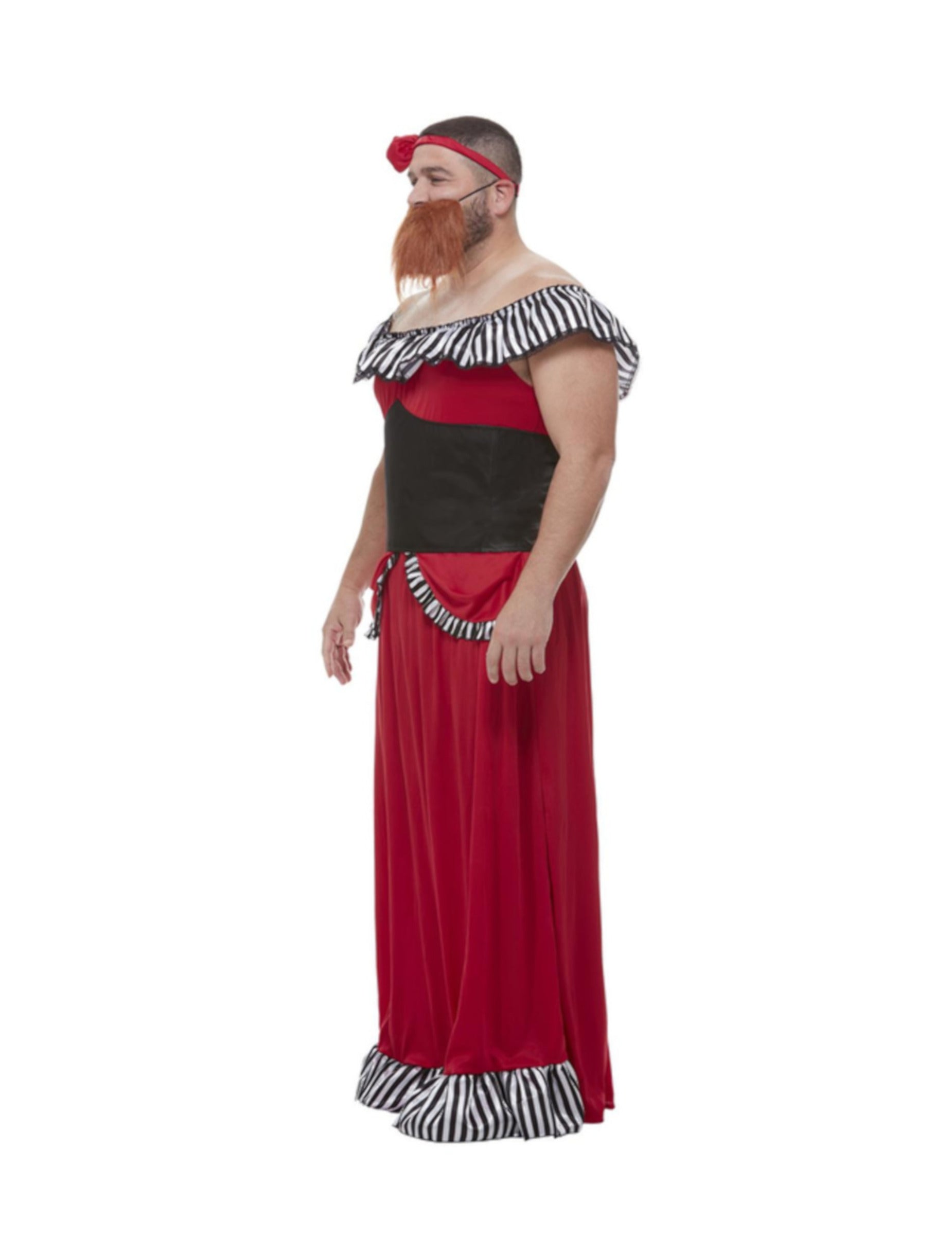 Ovaj kostim žene s bradom namijenjen je muškarcima. Sastoji se od haljine, korzeta, brade i trake za glavu.