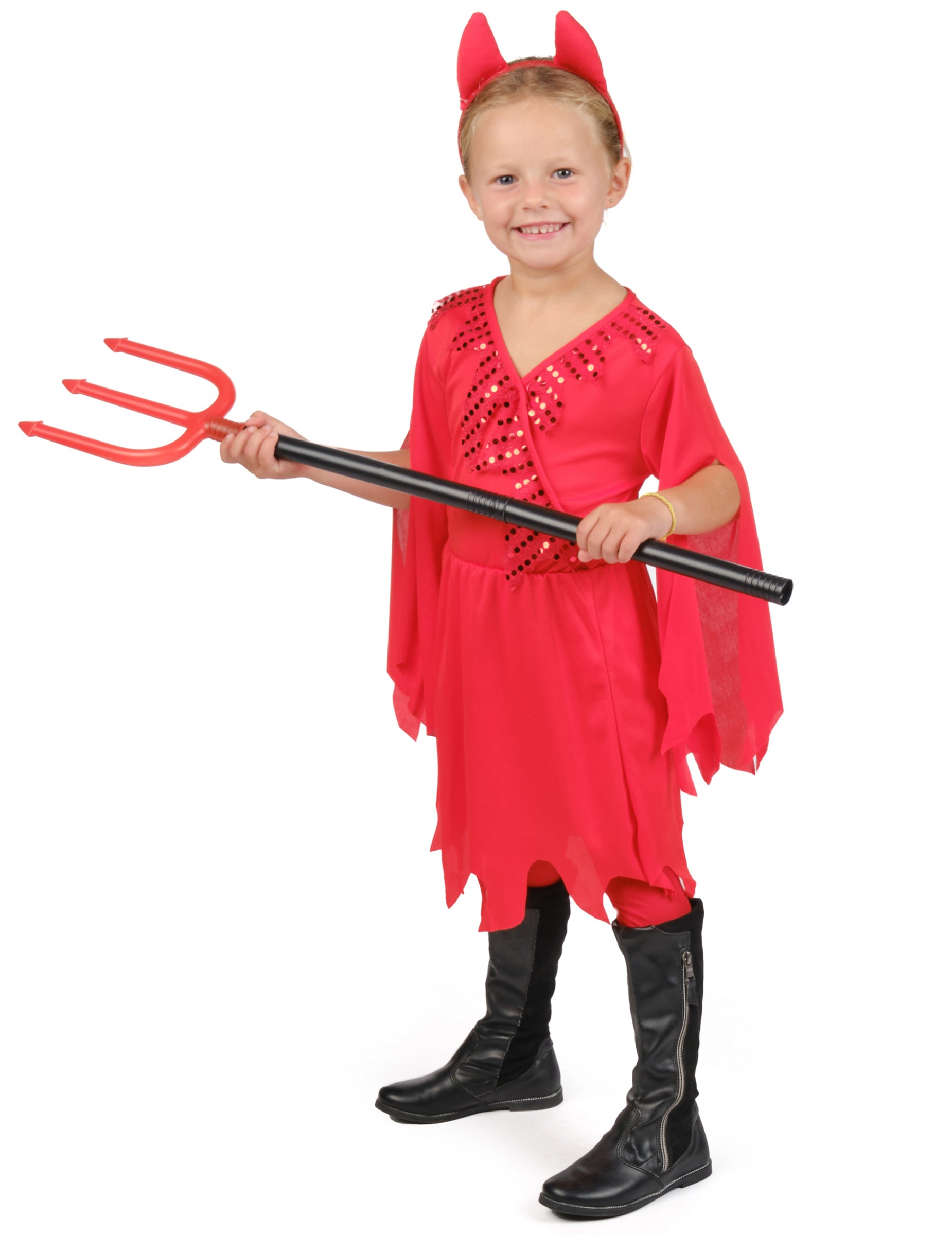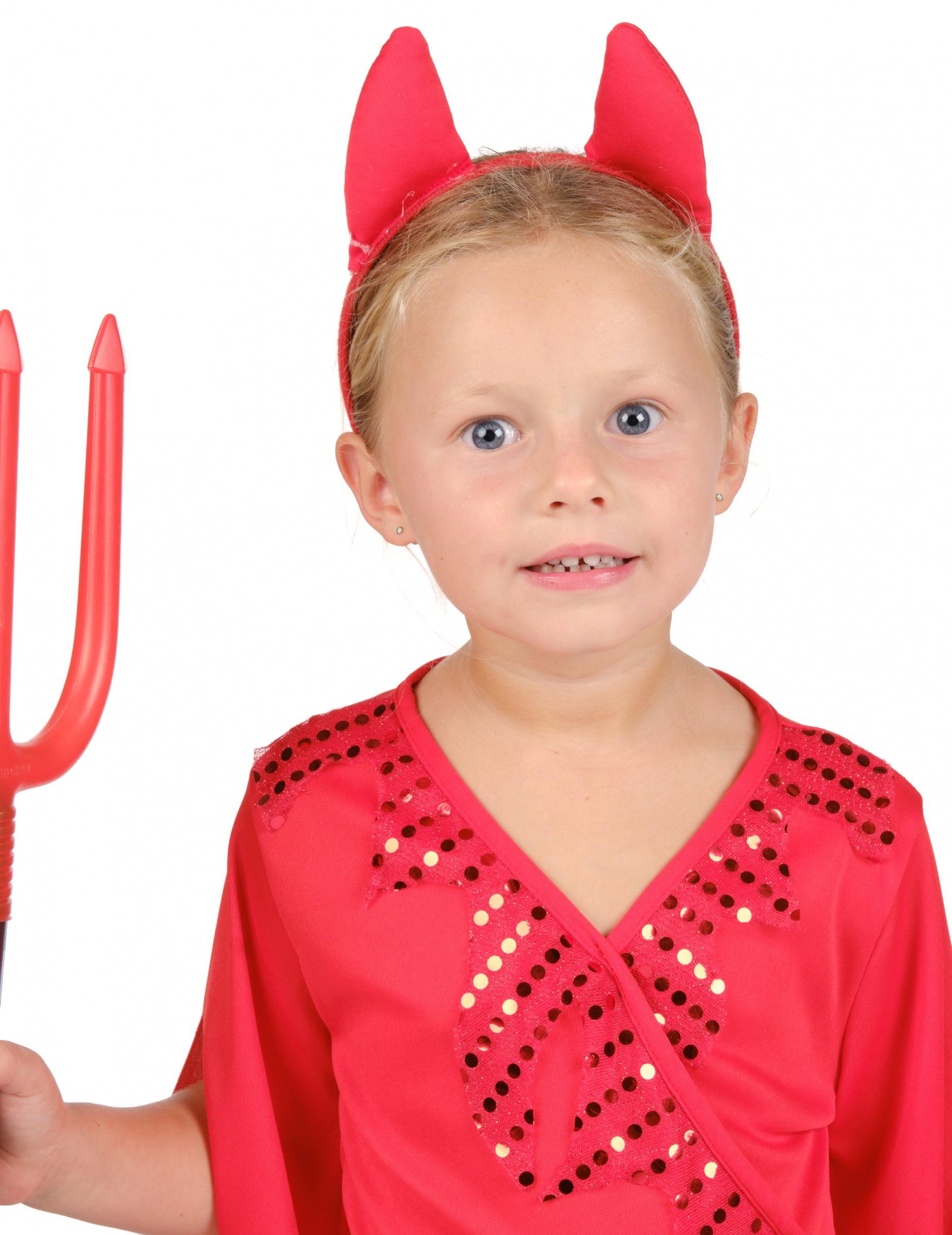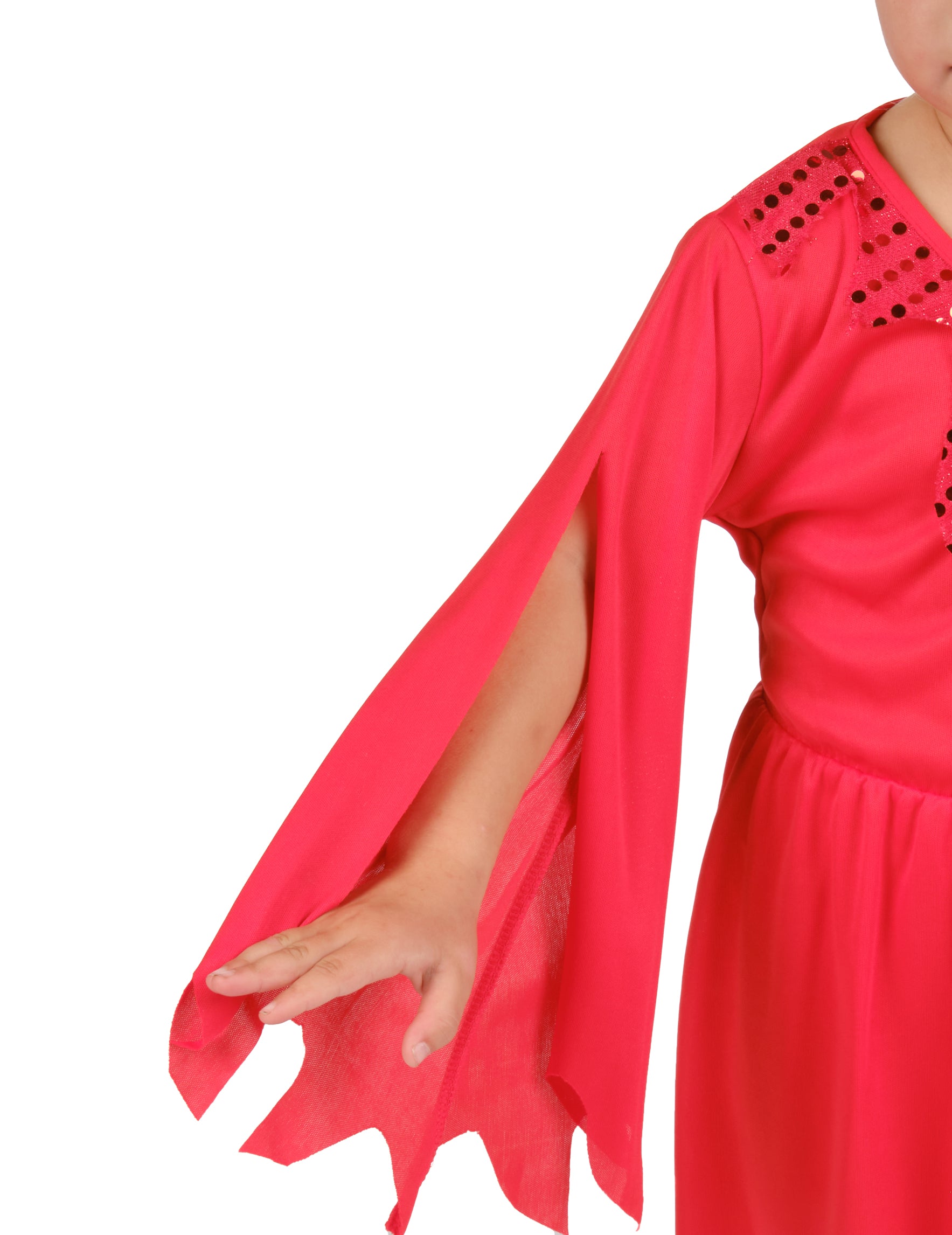 Ovaj kostim Crvenog vraga namijenjen je djevojčici, uključuje kombinaciju i traku za glavu. Kombinacija je crvena s dugim rukavima koji ruke ostavljaju gole. Kamenka je dugačka i stiže ispod koljena. Mali svjetlucav je nasuprot ogrlicama prerušenog. Stavite ovaj kostim Crvenog vraga za djevojčicu tijekom sljedeće večeri Noći vještica!