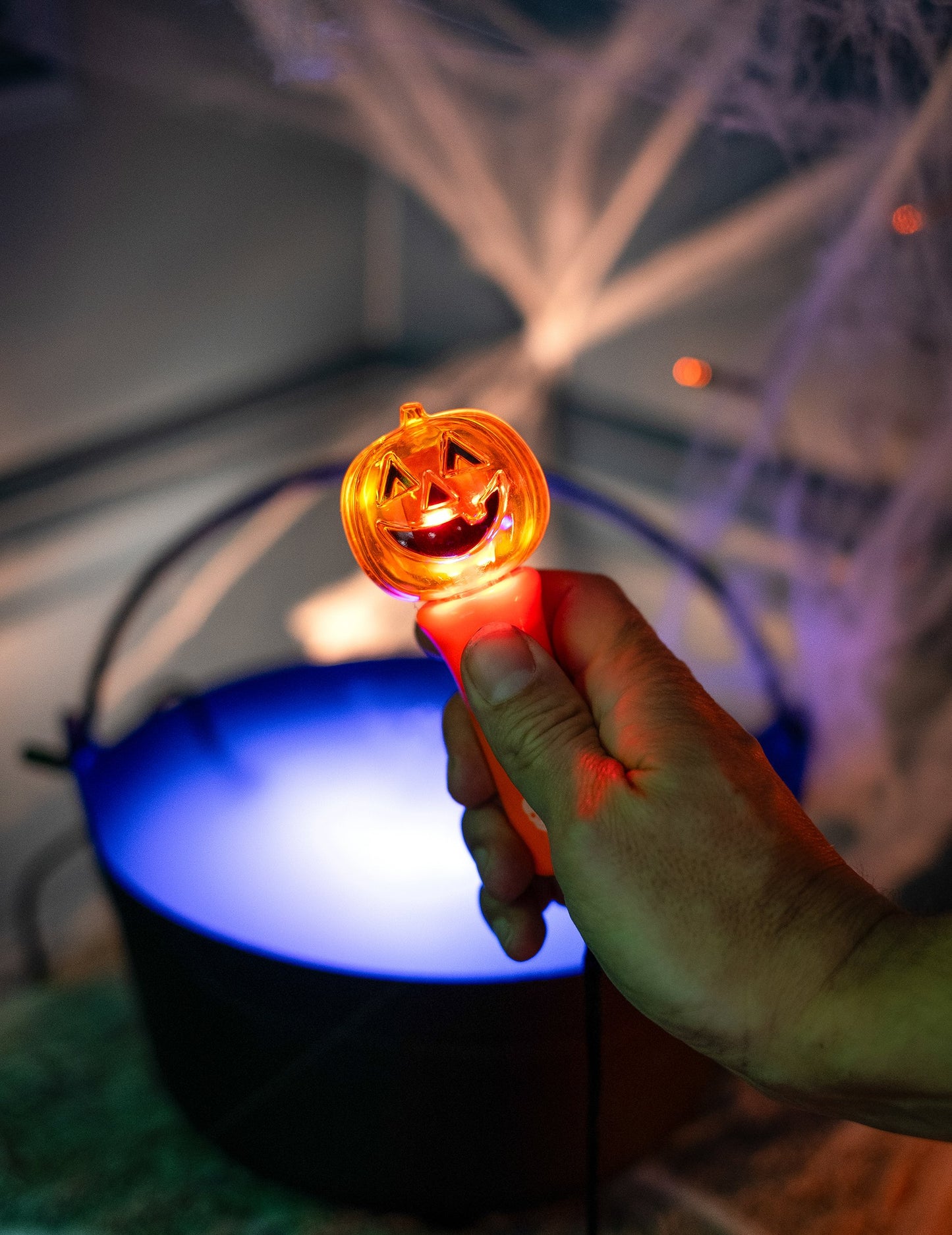 Ova baklja od vrpca bundeve je svijetla. Mjeri oko 12 cm duljine promjera 5 cm. Ova svjetiljka je narančasta i na ručici ima gumb za uključivanje/isključivanje. Osvijetlit će bundevu u različitim bojama. Ova baklja od bundeve Bright Spinner bit će savršena za odlazak lova na bombone na Halloween večer!