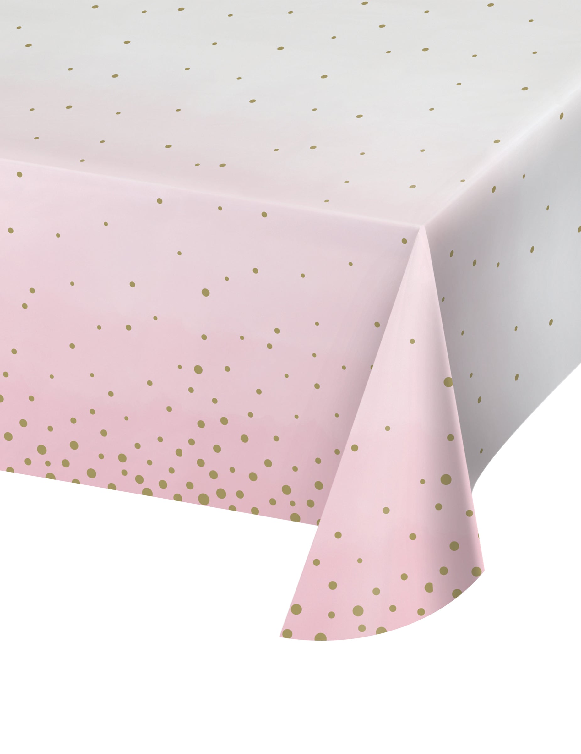 Uljepšajte svoju party dekoraciju ovom jednokratnom papirnatom stolnjakom dimenzija 137 x 259 cm. Stolnjak ima elegantnu bijelu podlogu s nježnim pastelno ružičastim prijelazom na rubovima i sitnim zlatnim točkicama. Ovaj stolnjak bit će središnji element koji će vašem stolu donijeti dašak nježnosti i elegancije tijekom baby showera ili svečanog događaja.
