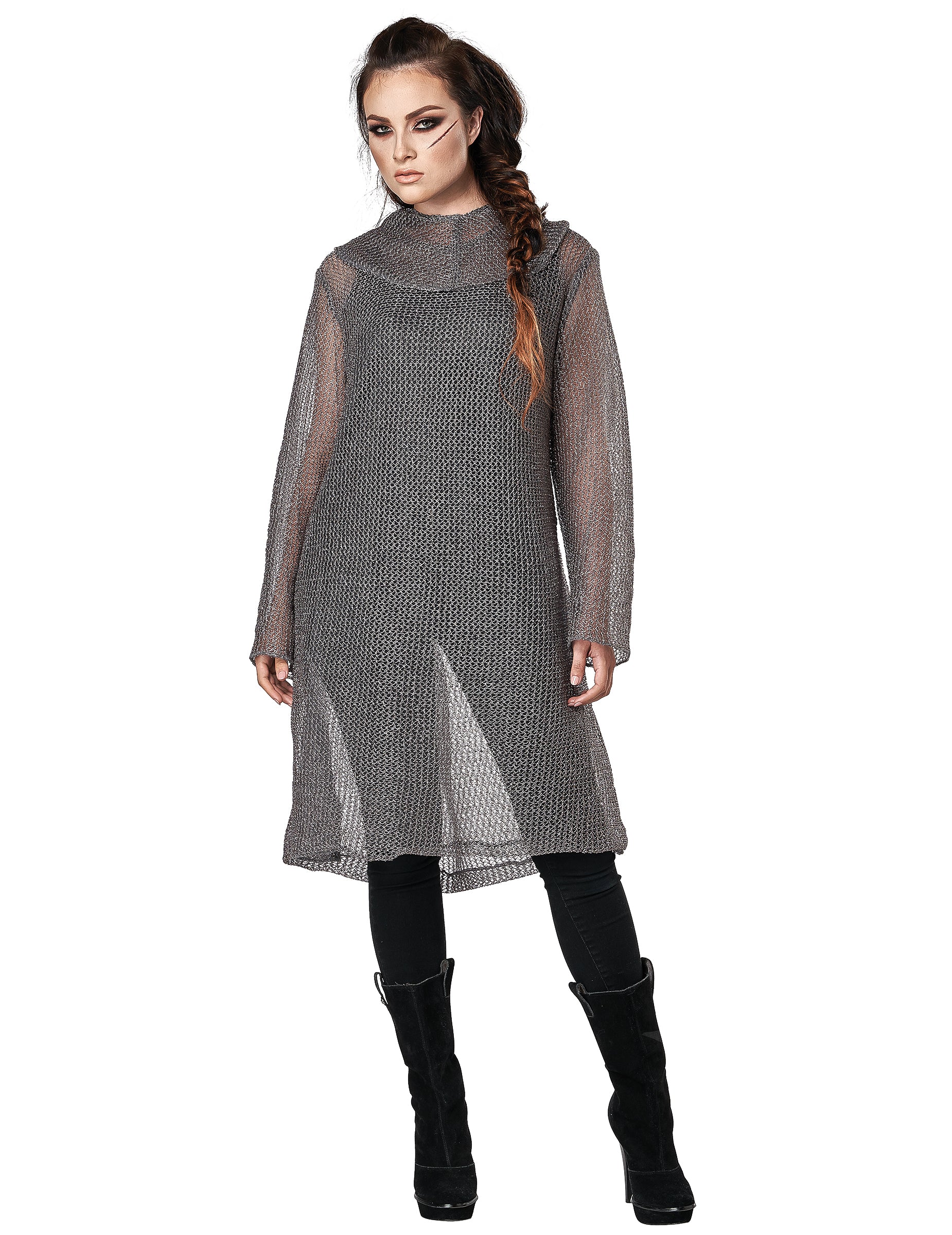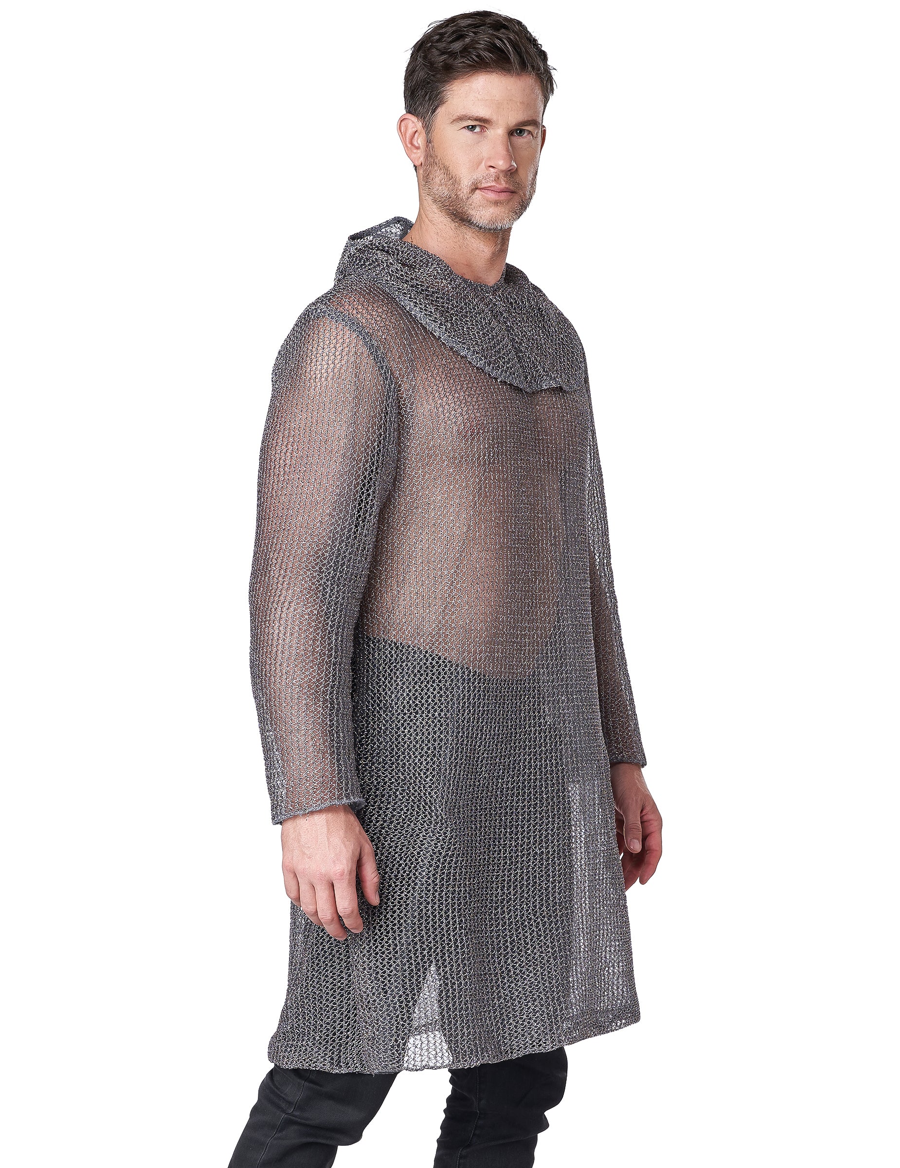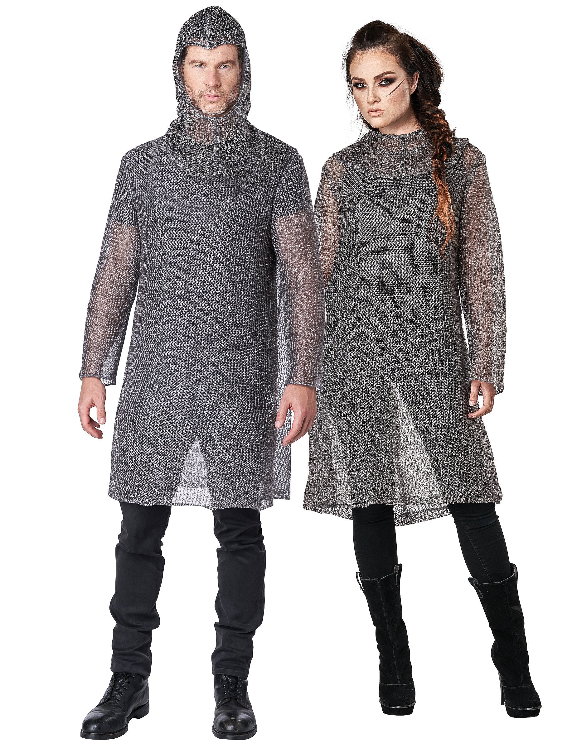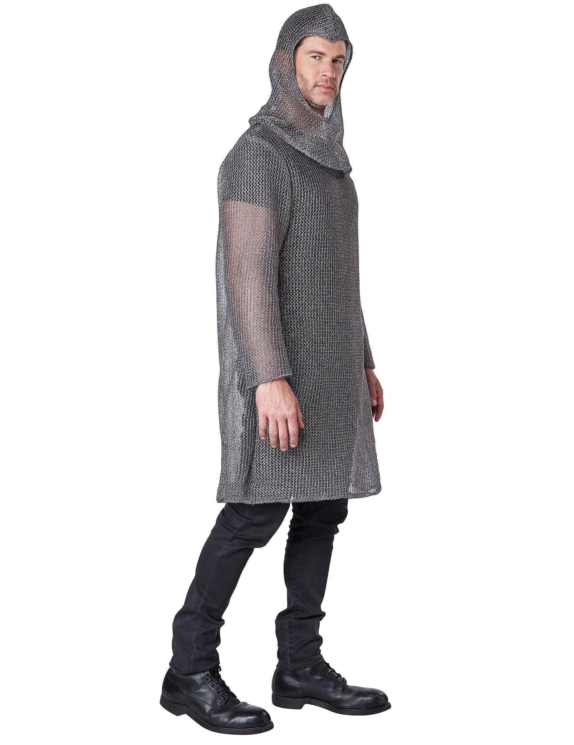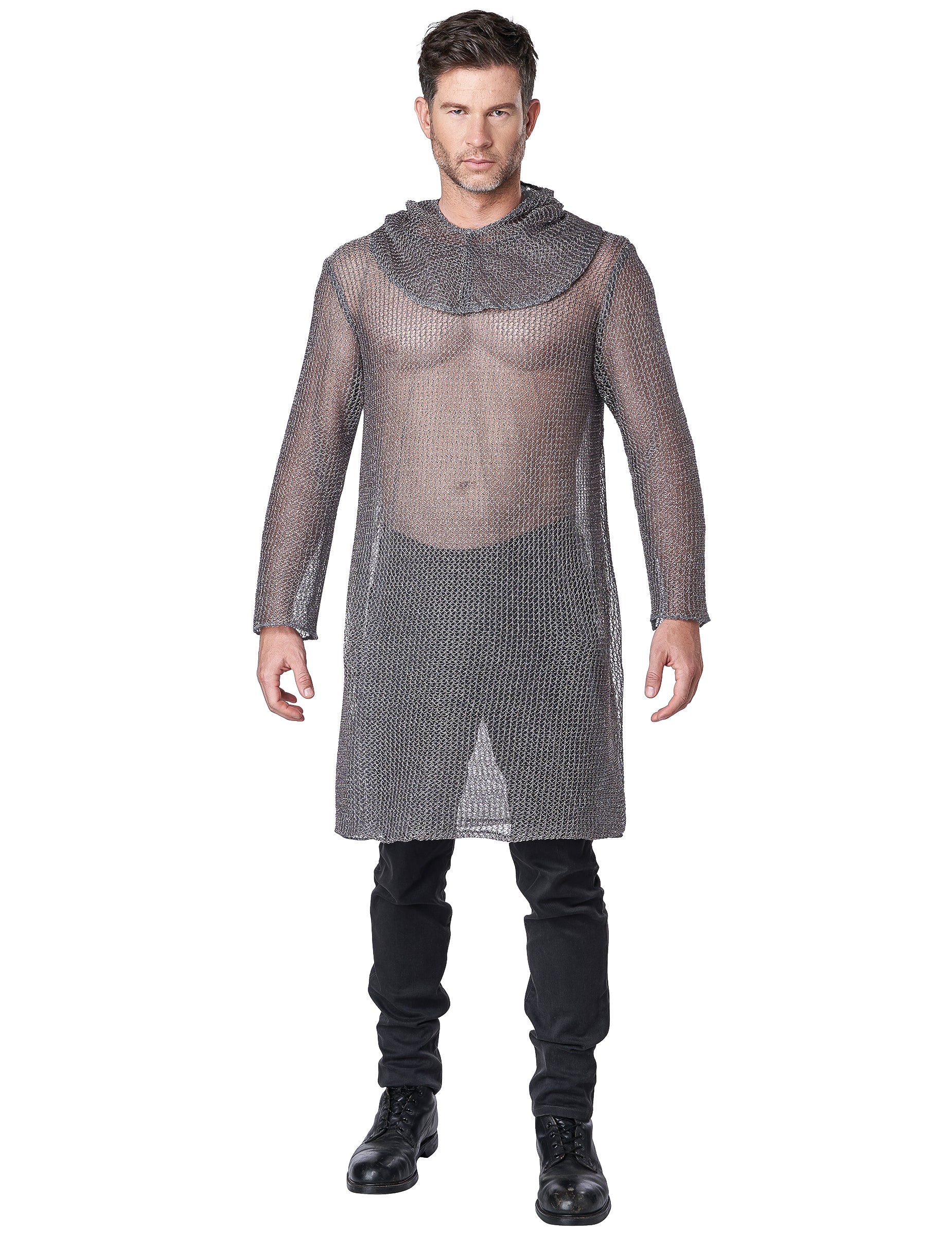 Ovaj kostim za obalu viteza namijenjen je odraslima, uključuje tuniku s kapuljačom (hlače i čizme nisu uključene). Ova tunika s kapuljačom imitira obale mrežice srednjovjekovnih vitezova. Stoga je srebrno sive boje s haubom. Samo vam nedostaje mač i štit koji će biti naoružan do zuba tijekom sljedeće zabave!