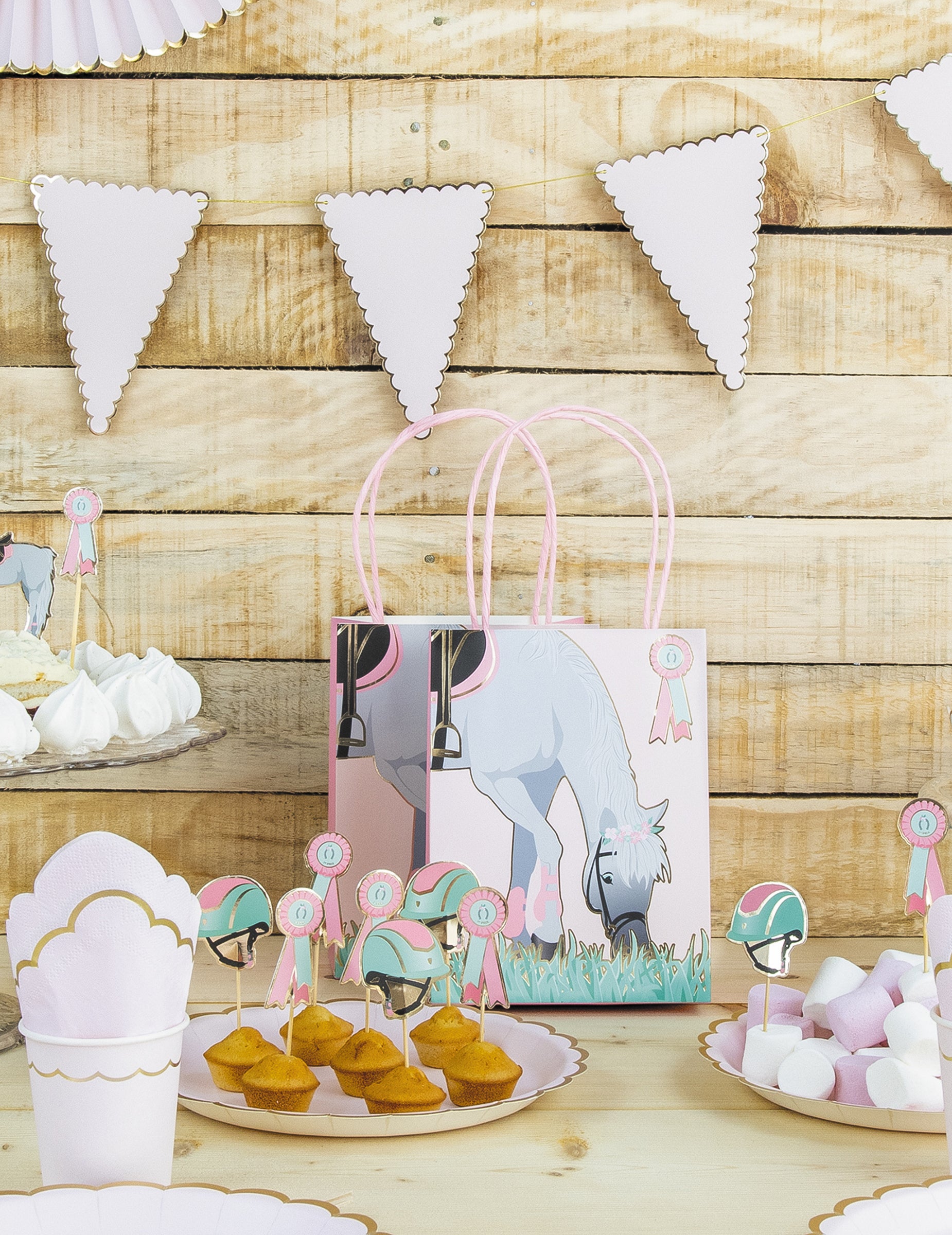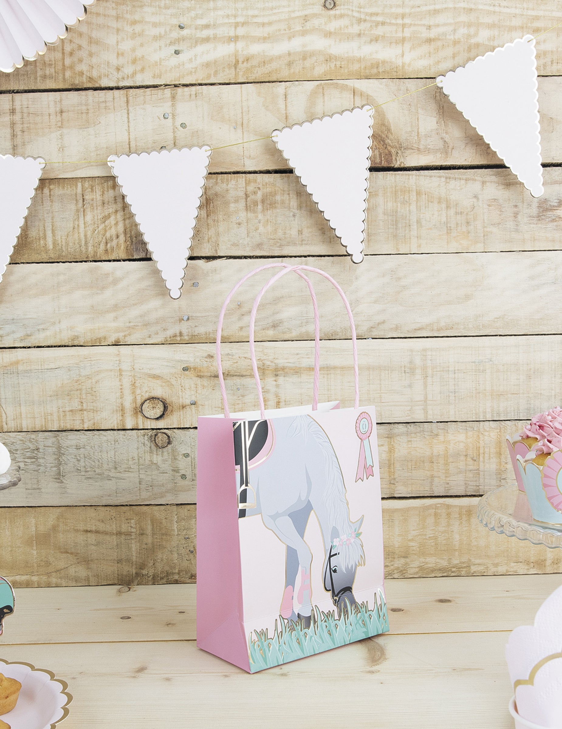 Ce lot se compose de 4 sacs de fête en papier mesurant 20 cm de hauteur. Chaque exemplaire met en scène un cheval gris dans la nature. Dotés de poignées et d'un petit ruban, ils permettent un transport aisé des friandises. Offrez ces sacs cadeaux originaux aux jeunes invités lors d'un anniversaire à thème cheval.