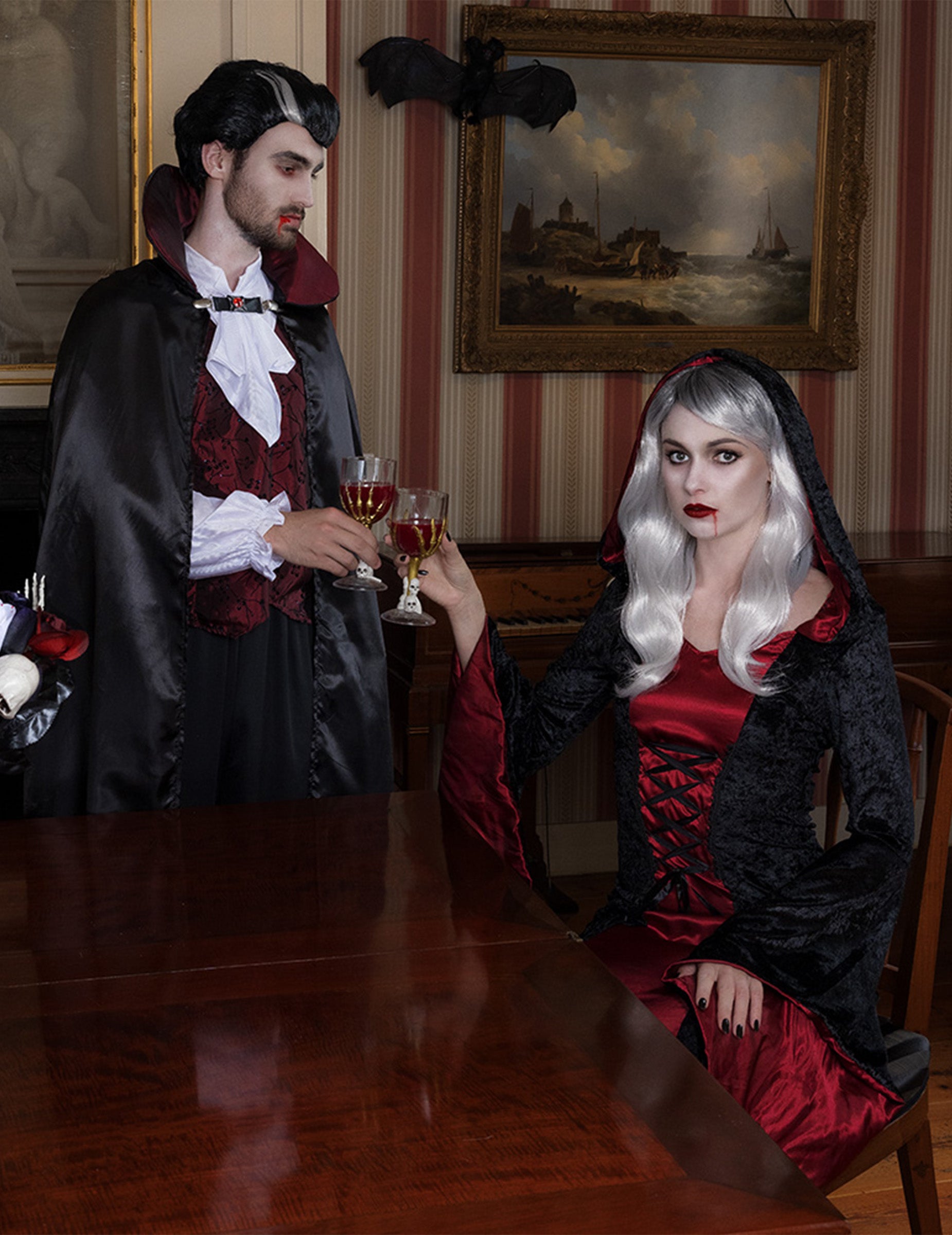 Ovaj goticki kostim s crvenom i crnom kapuljačom namijenjen je ženama. Sastoji se od haljine s kapuljačom.