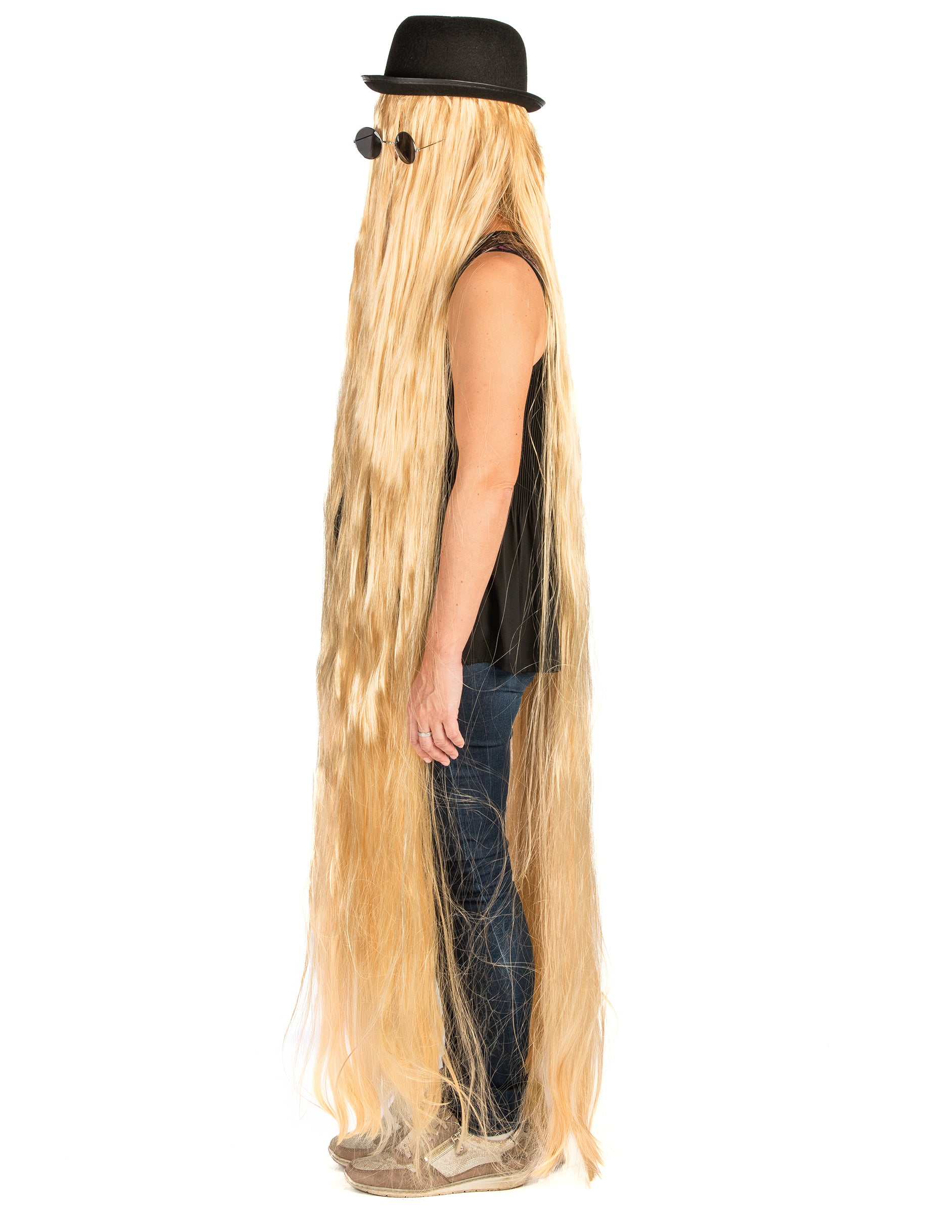 Ova ekstra duga plavokosa perika namijenjena je odraslima. Plavokosa boja, mjeri duljinu od 160 cm. Evo prave perike rođaka u jednoj od najpoznatijih američkih obitelji! Toliko je dugo da će cijelo tijelo pokriti noge! Ovaj kostim čudovišta za kosu bit će savršen za održavanje anonimnosti i zastrašivanje onih oko vas tijekom večeri na temi Noć vještica!