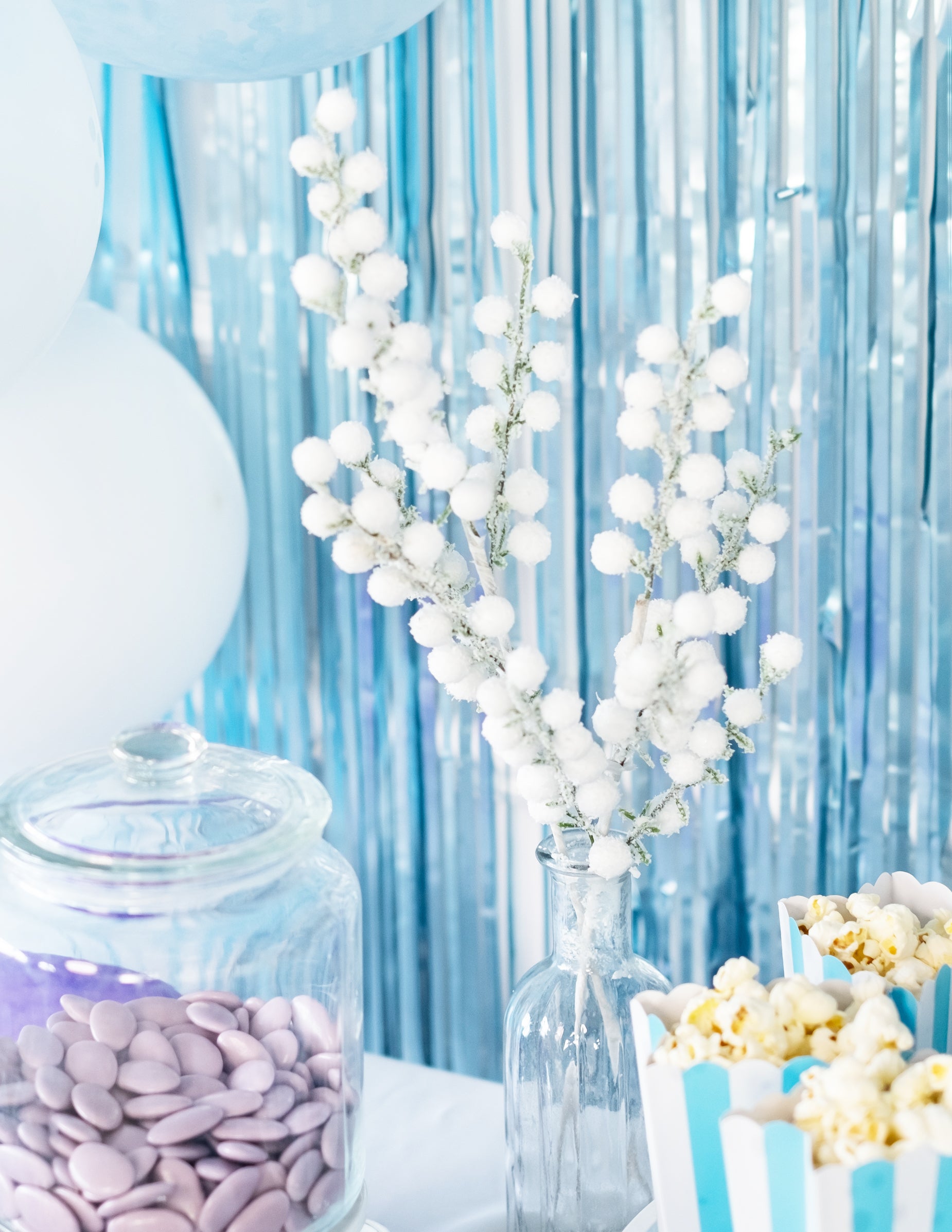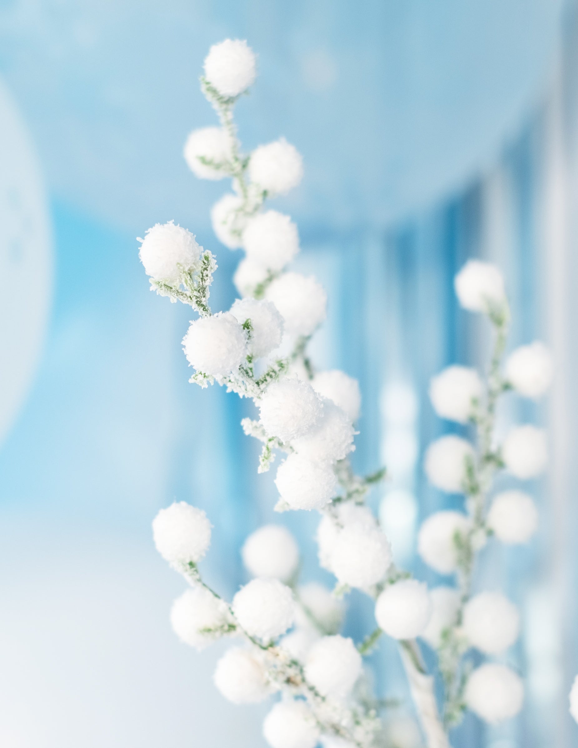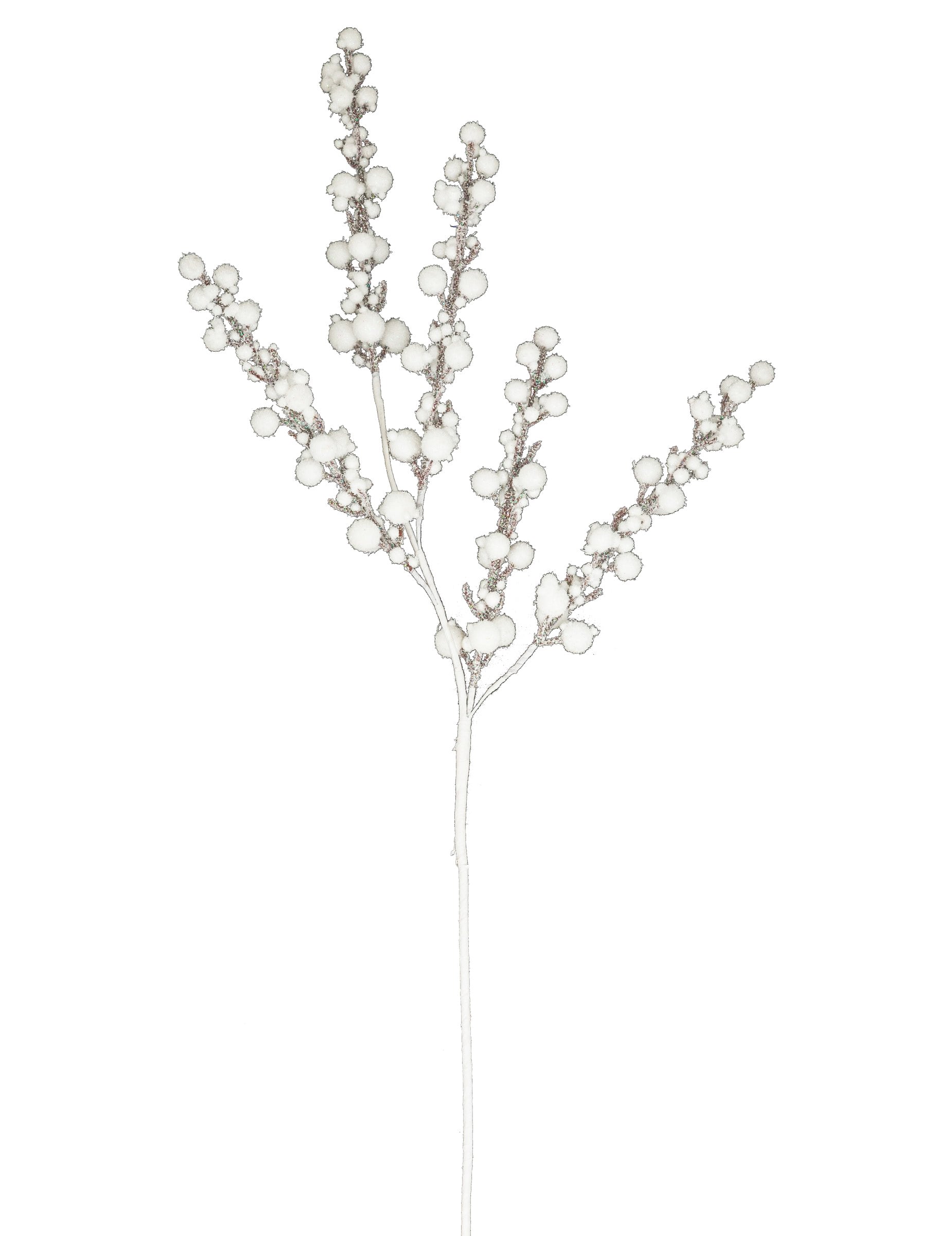 Ova grana mjeri otprilike 52 cm. Bijela je sa smrznutom kuglicama. Stvorite polarnu atmosferu u svom domu za proslavu kraja godine s ovom podružnicom zamrznutog aspekta!