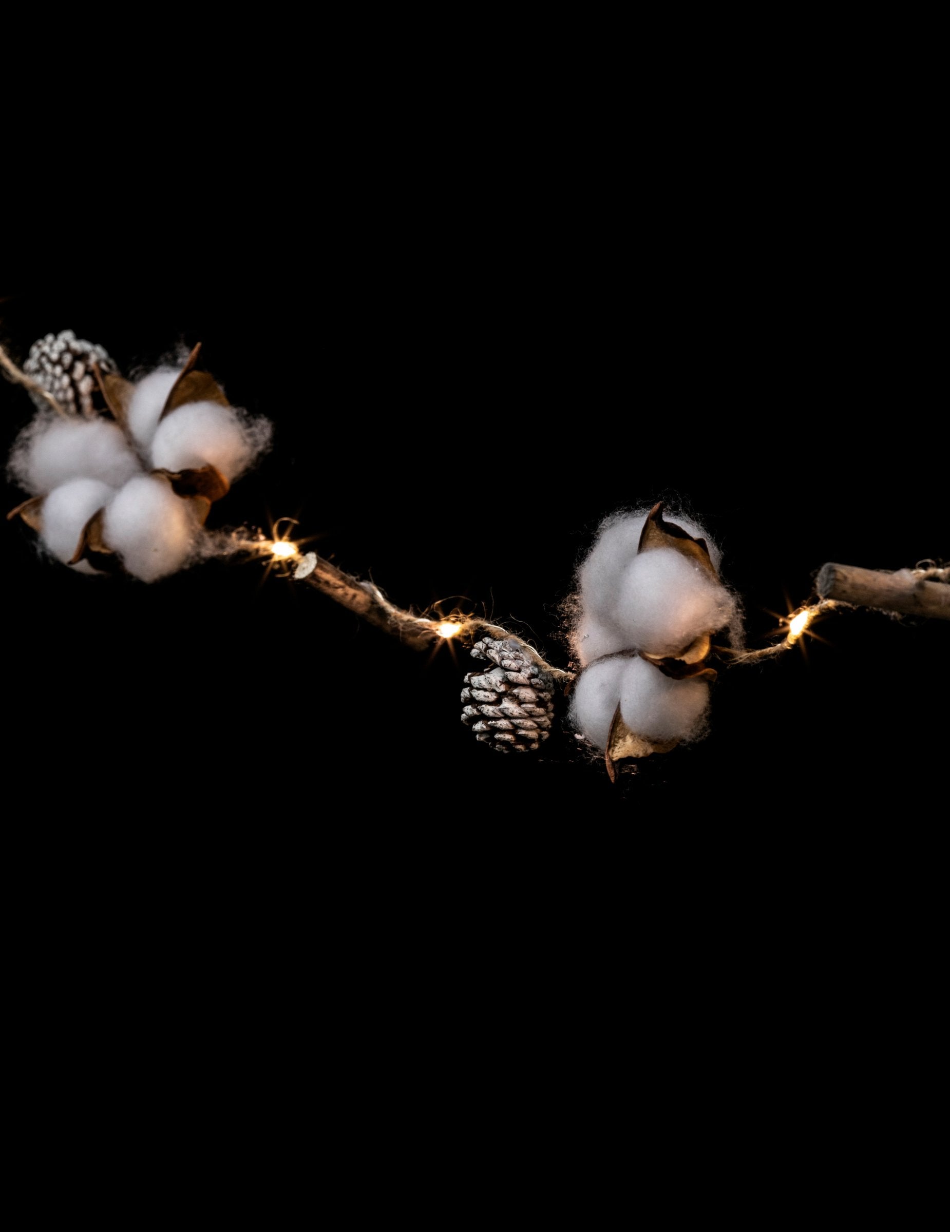 Ovaj svjetlosni vijenac od pamučnog svjetla mjeri oko 1,90 metara duljine. Ukrašen je kruhom kruhom, pamučnim cvjetovima i malim LED -ovima. S 2 AA baterije (nisu uključene) vidjet ćete da je vaš vijenac osvijetljen! Dovršite svoj unutarnji ukras tijekom večeri za Božić ili drugi događaj!