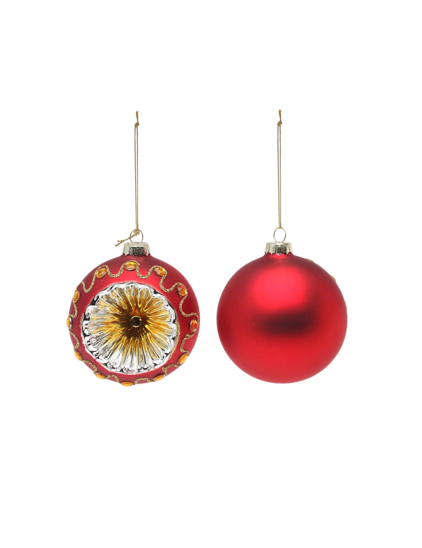 Ovaj set sastoji se od 2 božićne kuglice u crvenom i zlatnom staklu. Imaju promjer od oko 8 cm. Ove će kuglice savršeno dovršiti ukras vašeg božićnog drvca!