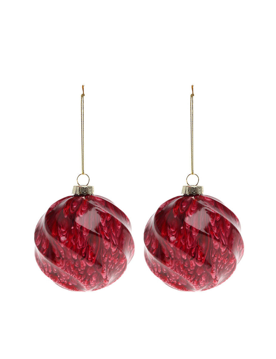 2 crvene mramorne staklene kuglice 8 cm