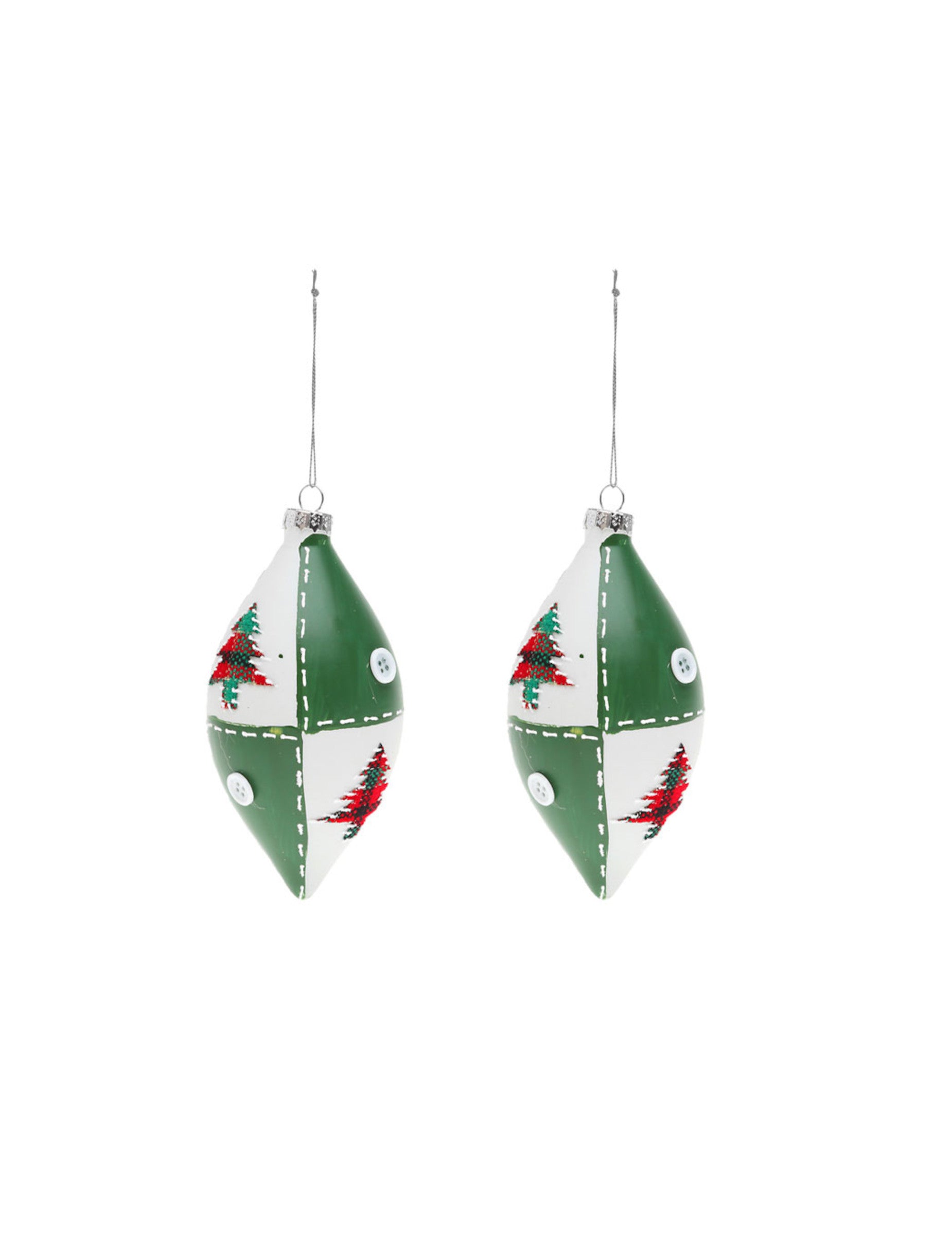 2 staklene kuglice u obliku kapljice, bijele i zelene, 13 cm