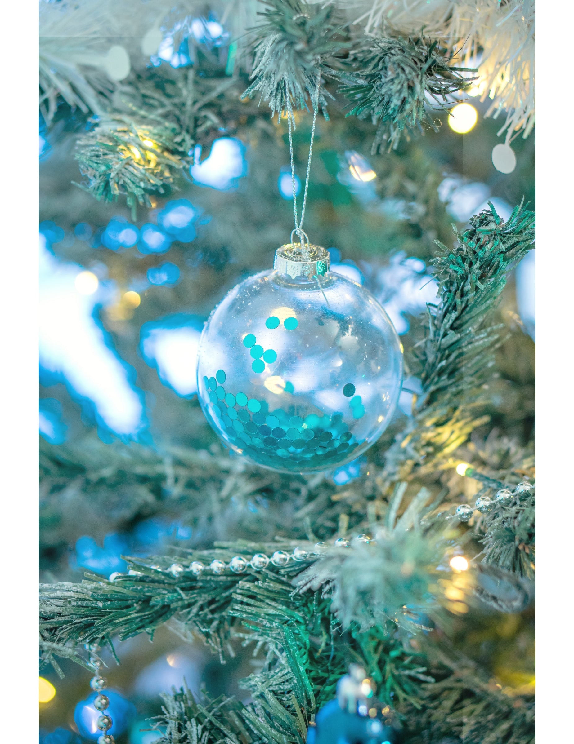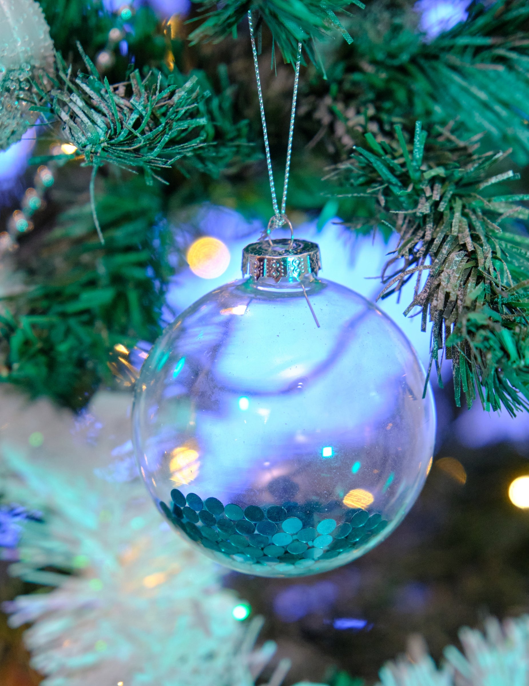 Sublimez votre sapin de noël grâce à ce lot de 2 boules de noël d'un diamètre de 8 cm. Fabriquées en verre transparent, elles renferment de délicates paillettes bleues pour un effet scintillant. Ces boules à paillettes bleues apporteront une note d'originalité et de fraîcheur à votre décoration de fin d'année.