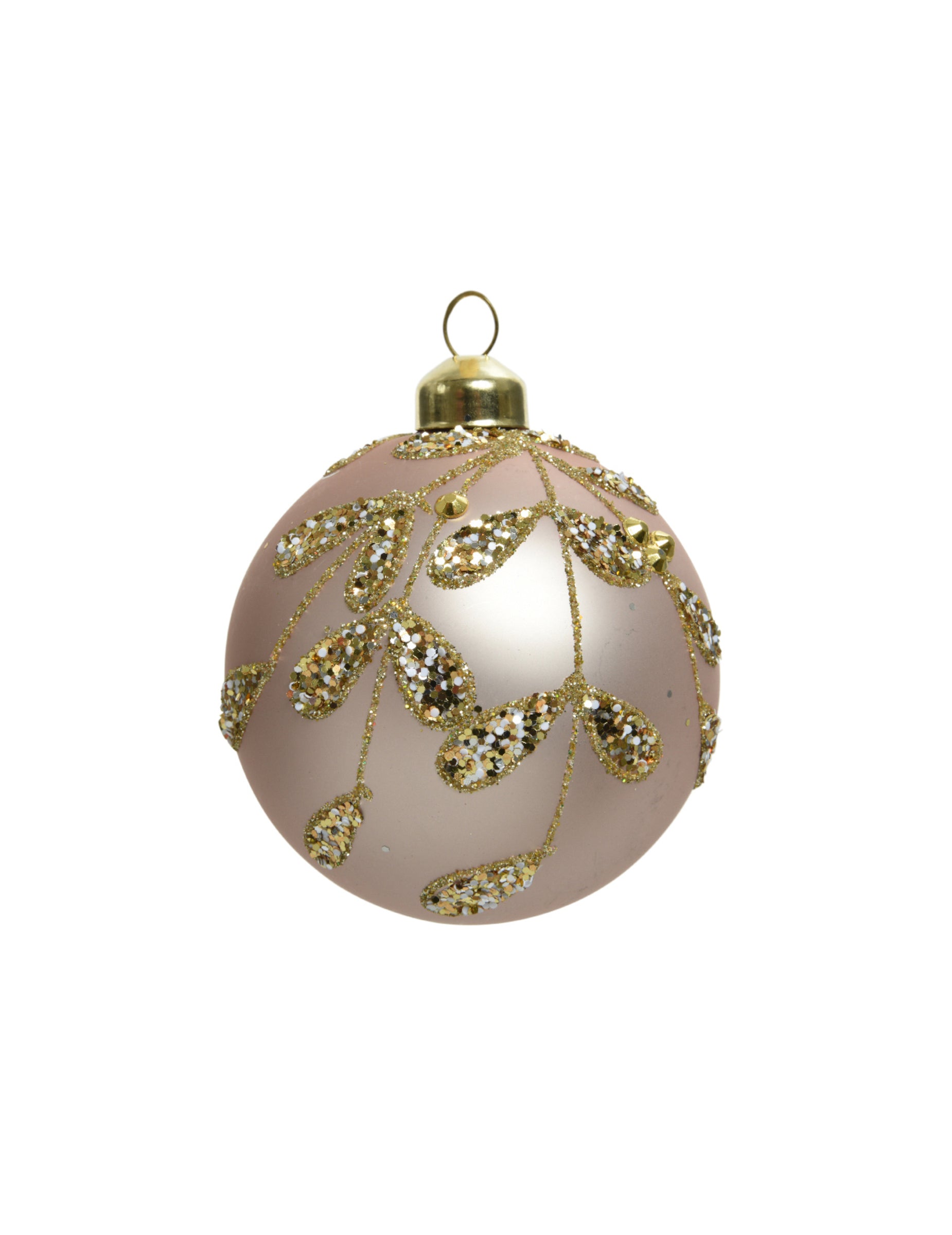Sublimez votre sapin avec ce lot de 3 boules de noël conçues en verre de 8 cm de diamètre. Chaque pièce arbore une élégante teinte rose poudré, agrémentée de motifs de feuilles dorées et de paillettes scintillantes. Ces boules brillantes apporteront une touche de raffinement et d'éclat à votre décoration durant les fêtes de noël.