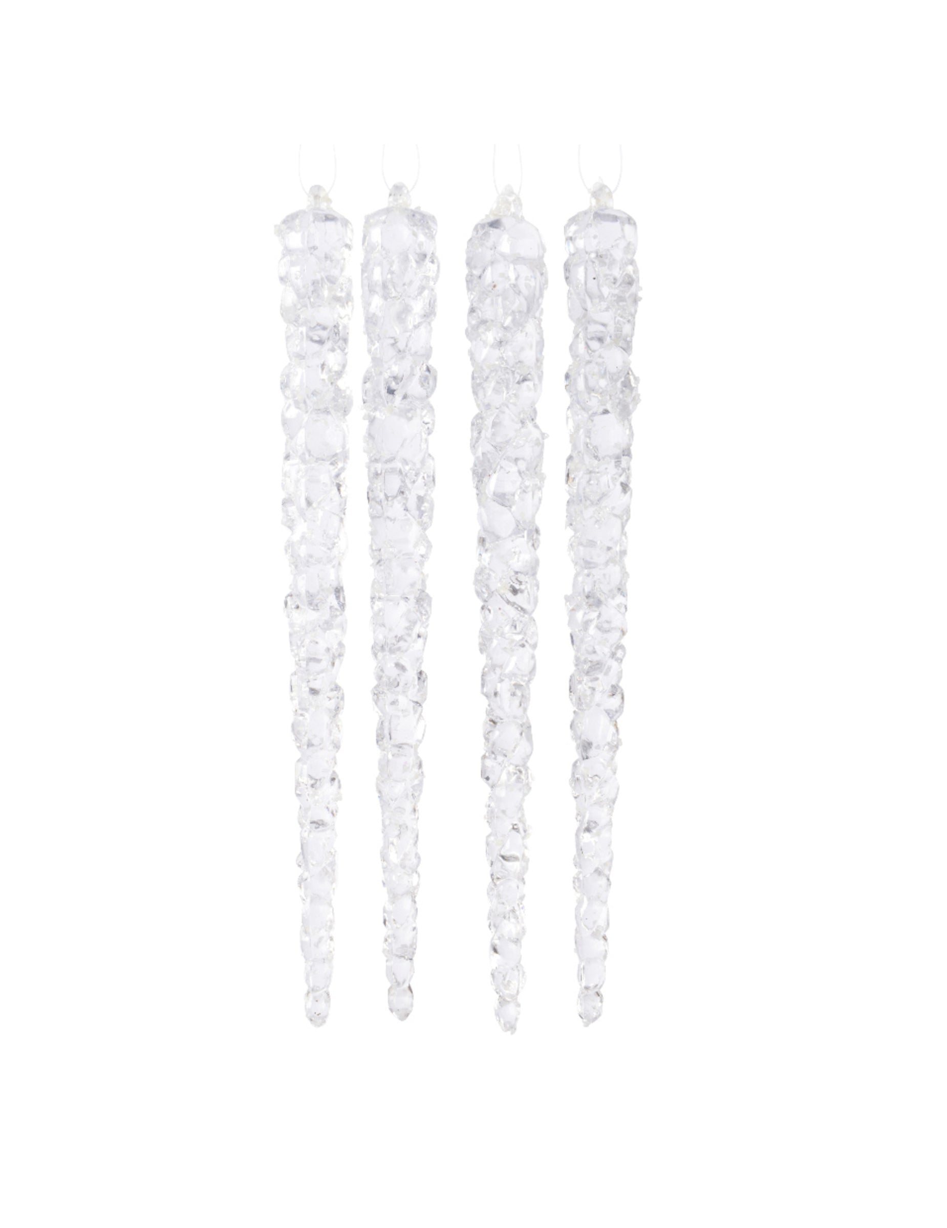 Apportez une touche magique à votre intérieur avec ce pack de 4 suspensions de 15 cm. Conçues en plastique translucide, ces décorations imitent la forme d'une stalactite et possèdent la particularité de briller dans l'obscurité. Ces stalactites phosphorescentes sont parfaites pour orner votre arbre ou vos rebords de fenêtres, créant instantanément une décoration de Noël à l'atmosphère hivernale et polaire.