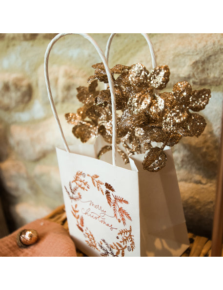 6 grančica eukaliptusa s bakrenim šljokicama 17 cm za čarobni Božić
