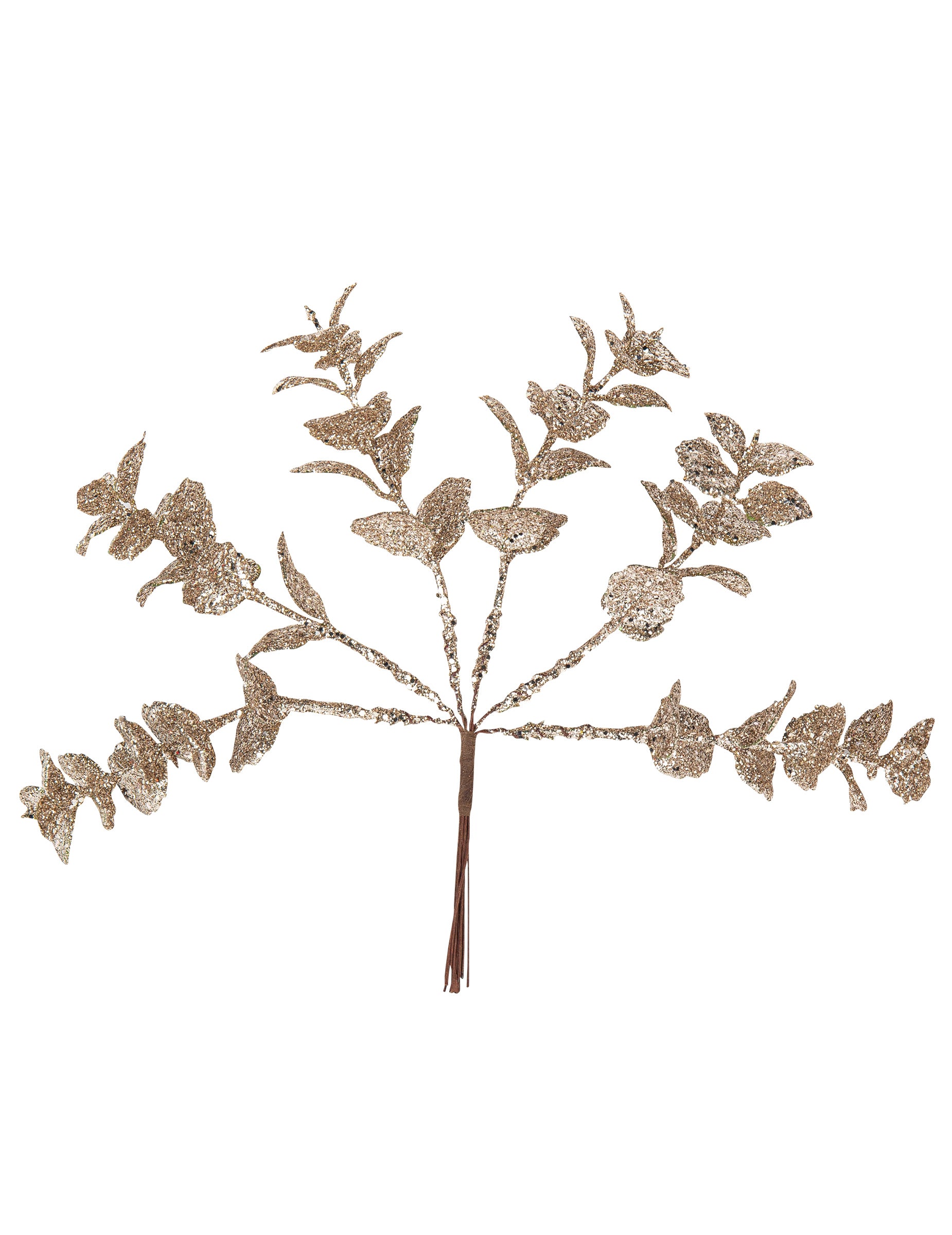 6 grančica eukaliptusa s glitterom u boji šampanjca 17 cm Božić