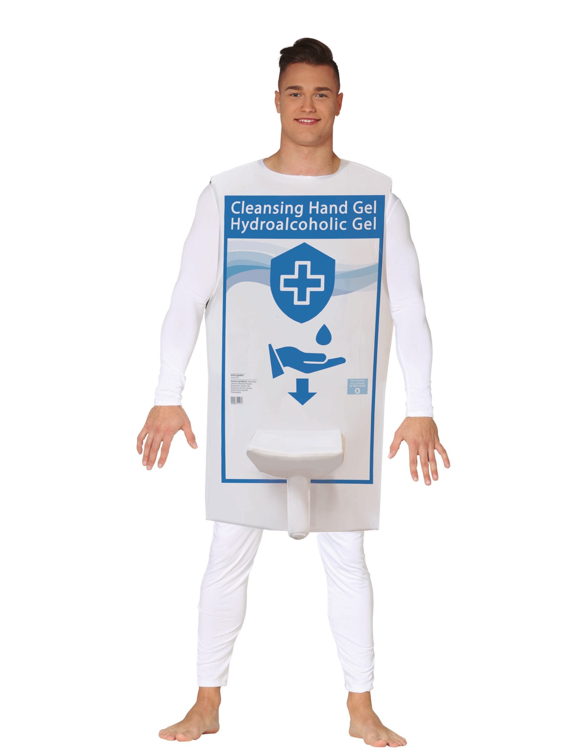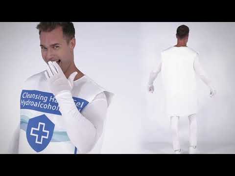 Ovaj dezinficijens za ruke u humorističnom kostimu namijenjen je odraslima i sastoji se od tunike.